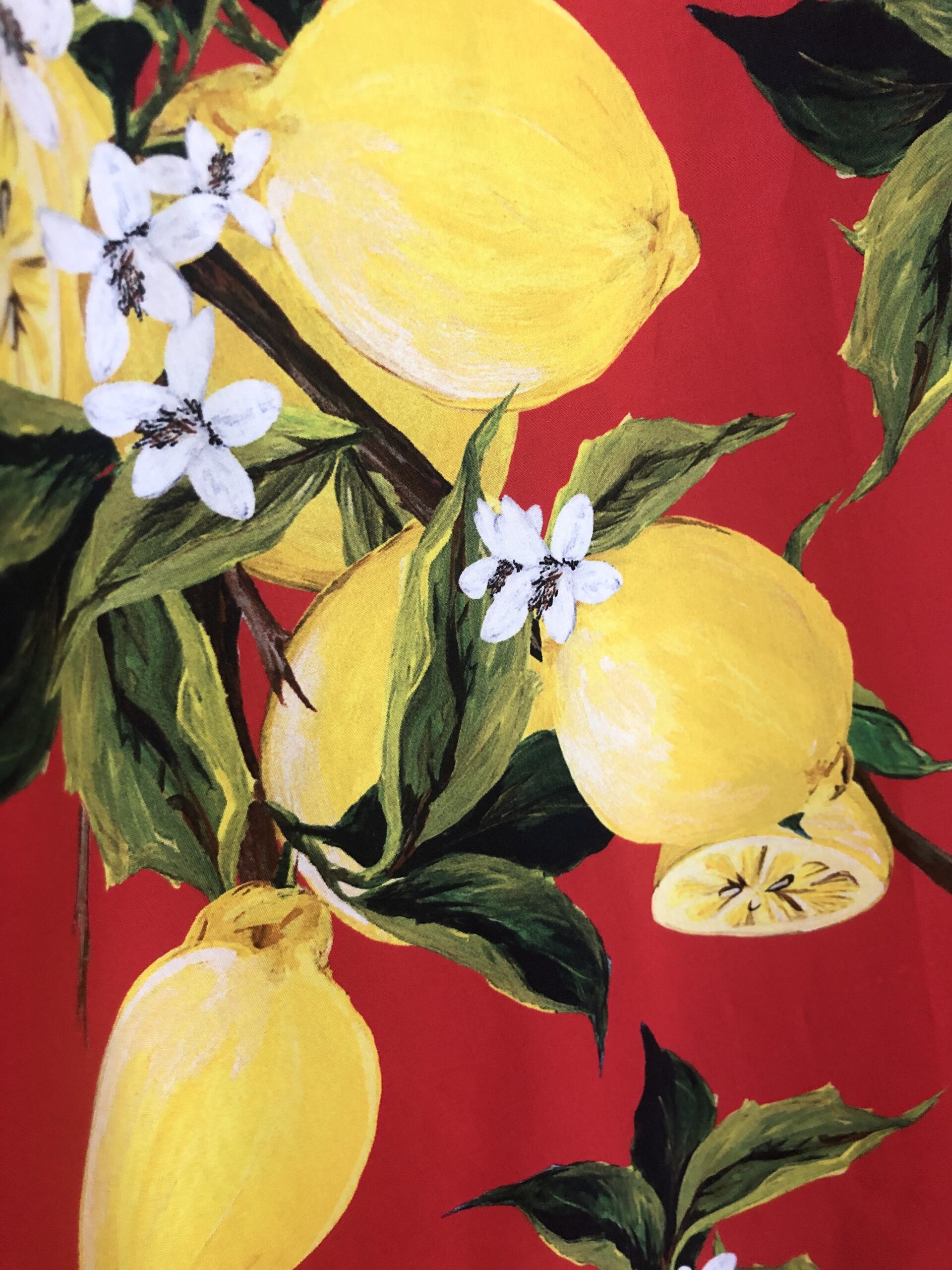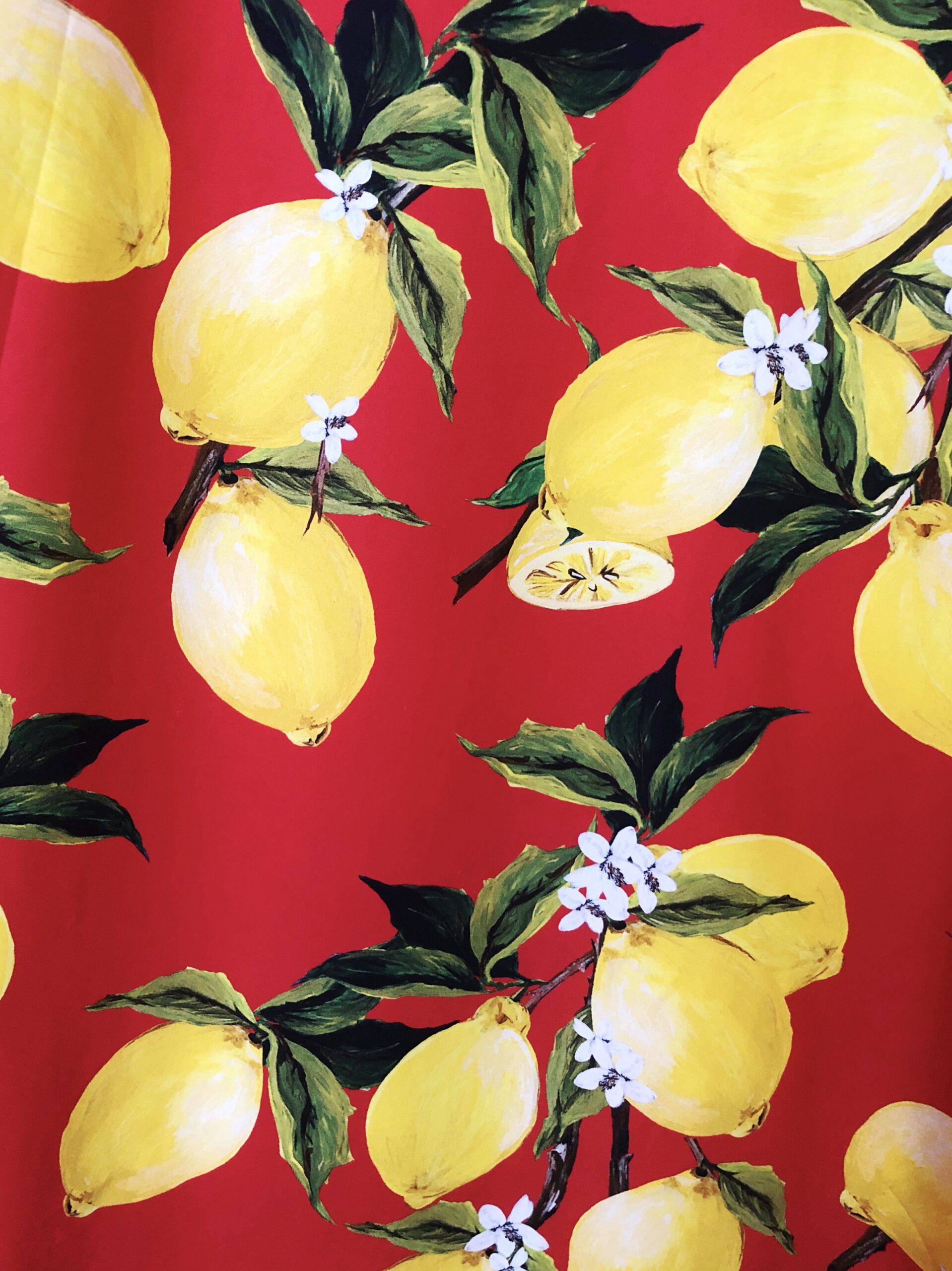 I was an incredibly lucky lass and was gifted some beautiful ex-D&G cotton for my birthday from my boyfriend. It’s a punchy, true red with a hand-painted design of lemons, and the details of this fabric are just stunning: