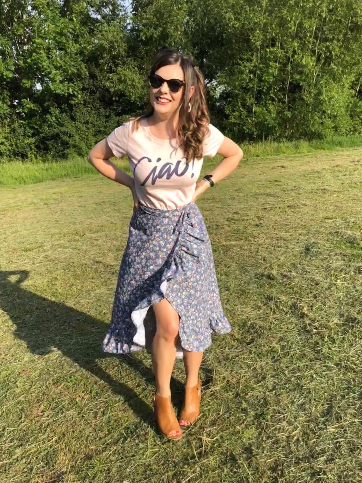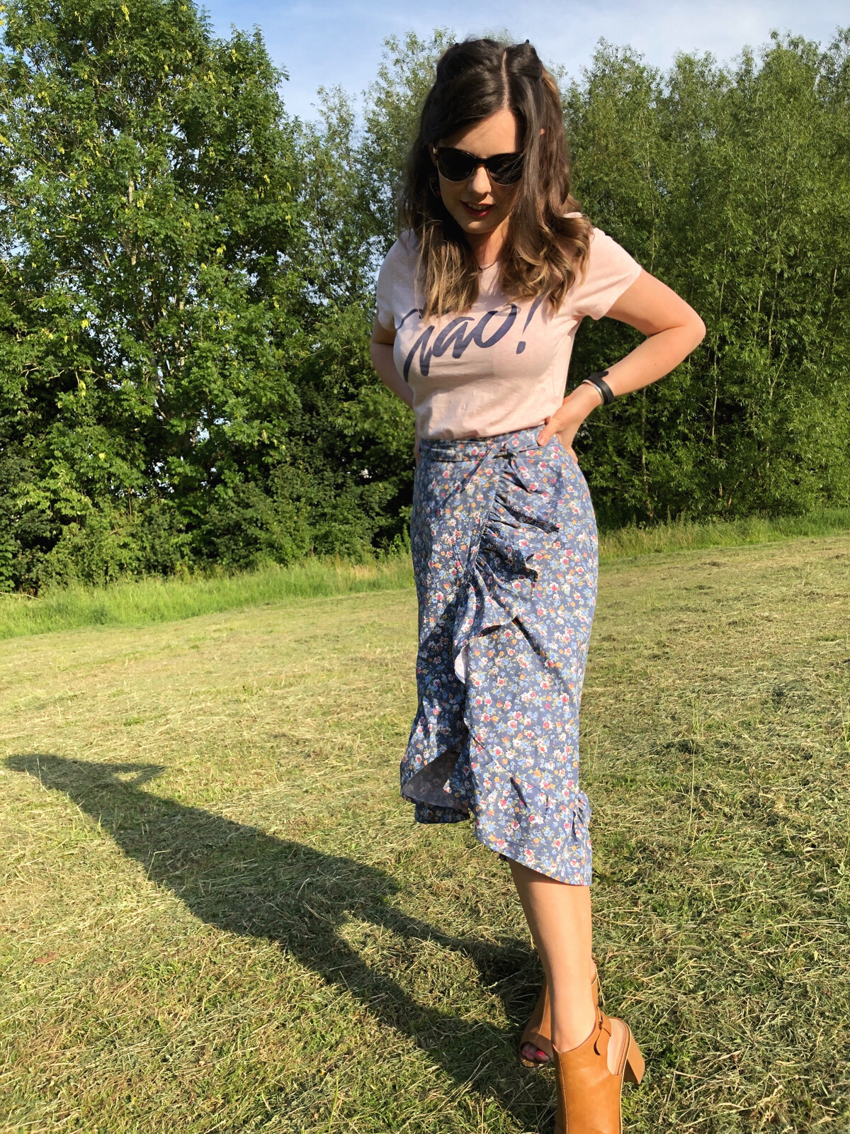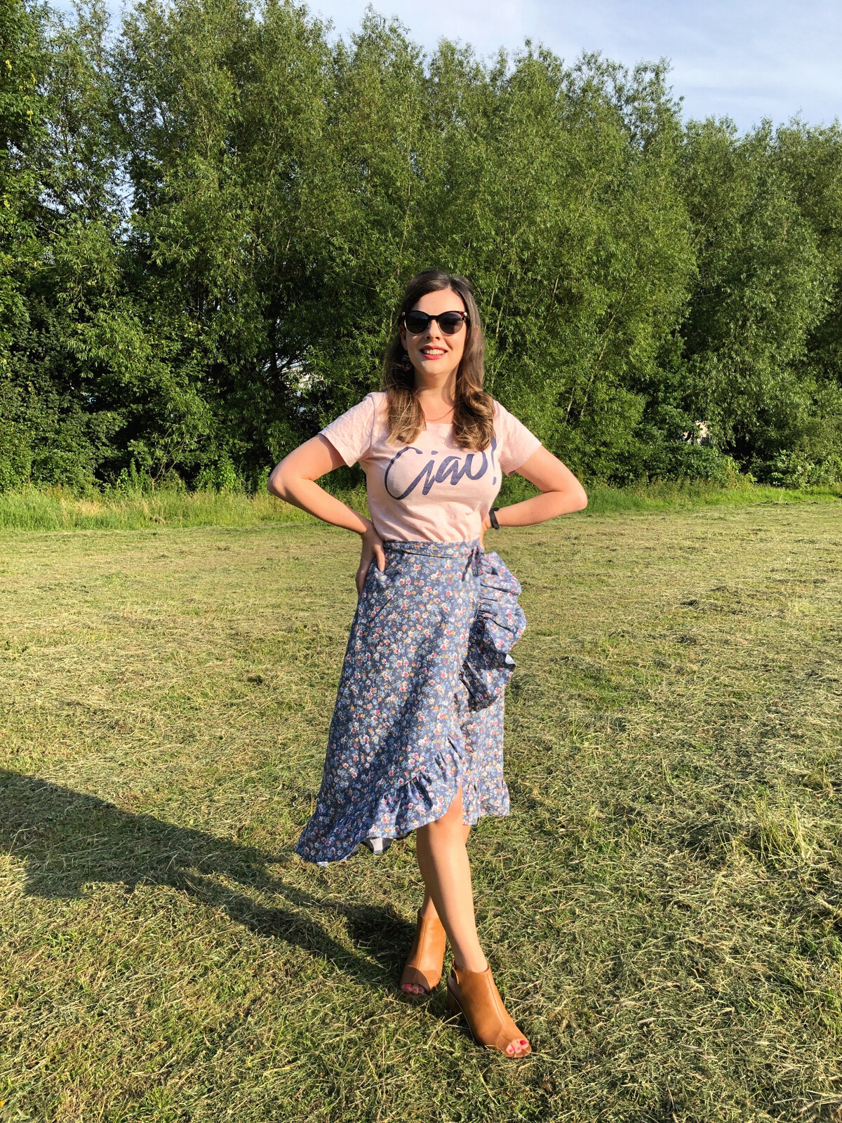 I truly believe that wrap skirts and summer are the perfect combination; they go together like strawberries and cream… or like gin and tonic! These skirts are such an easy option for both dressing up and down, and feel so comfortable to wear when the days get warmer. I was on the hunt for a good wrap skirt pattern and found McCall’s 7606, which has two options for the skirt and two bodysuits. I immediately was drawn to View C, as it would hit me about mid-calf length and has a big statement ruffle around the hem, which just screams summer vibes.