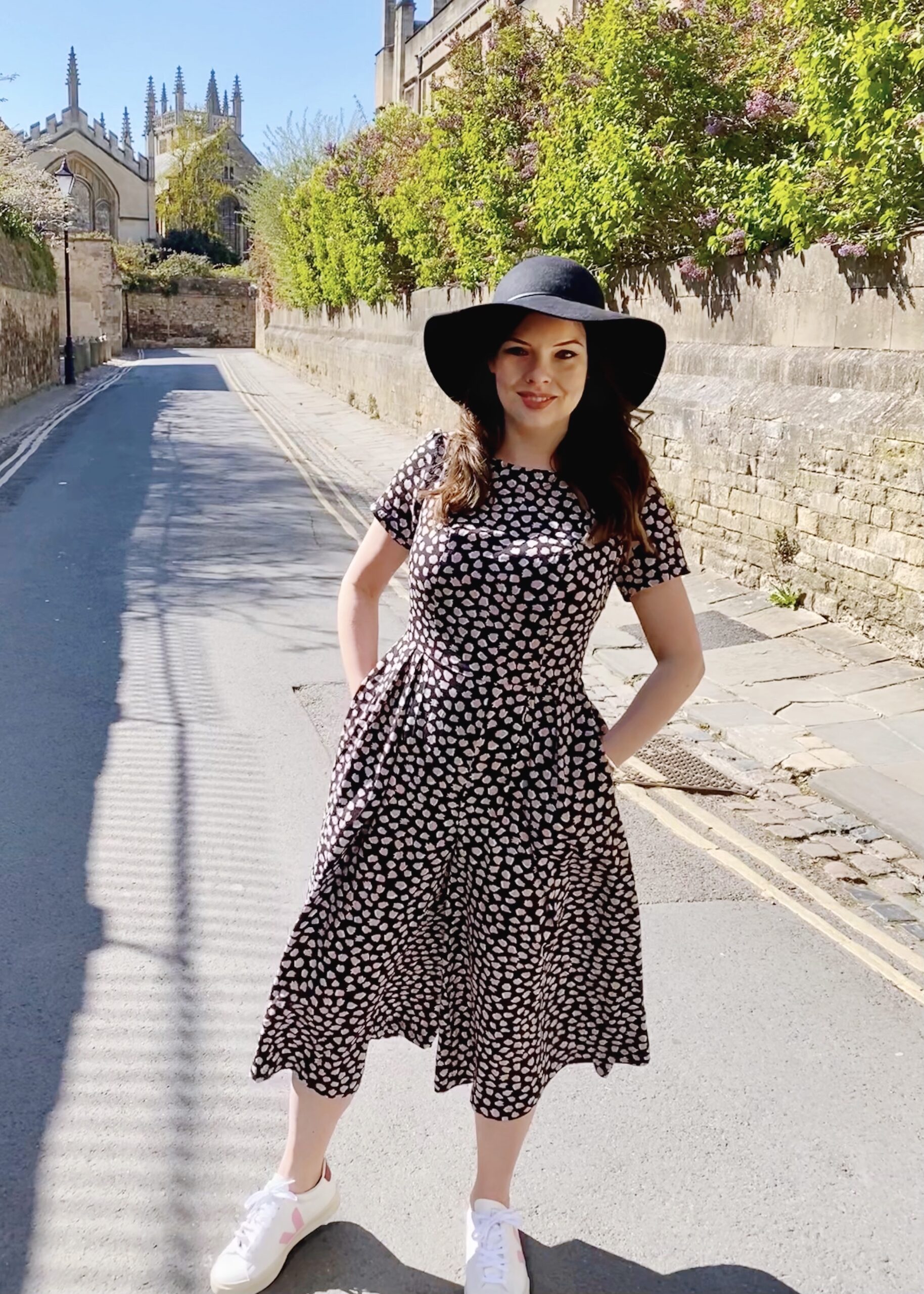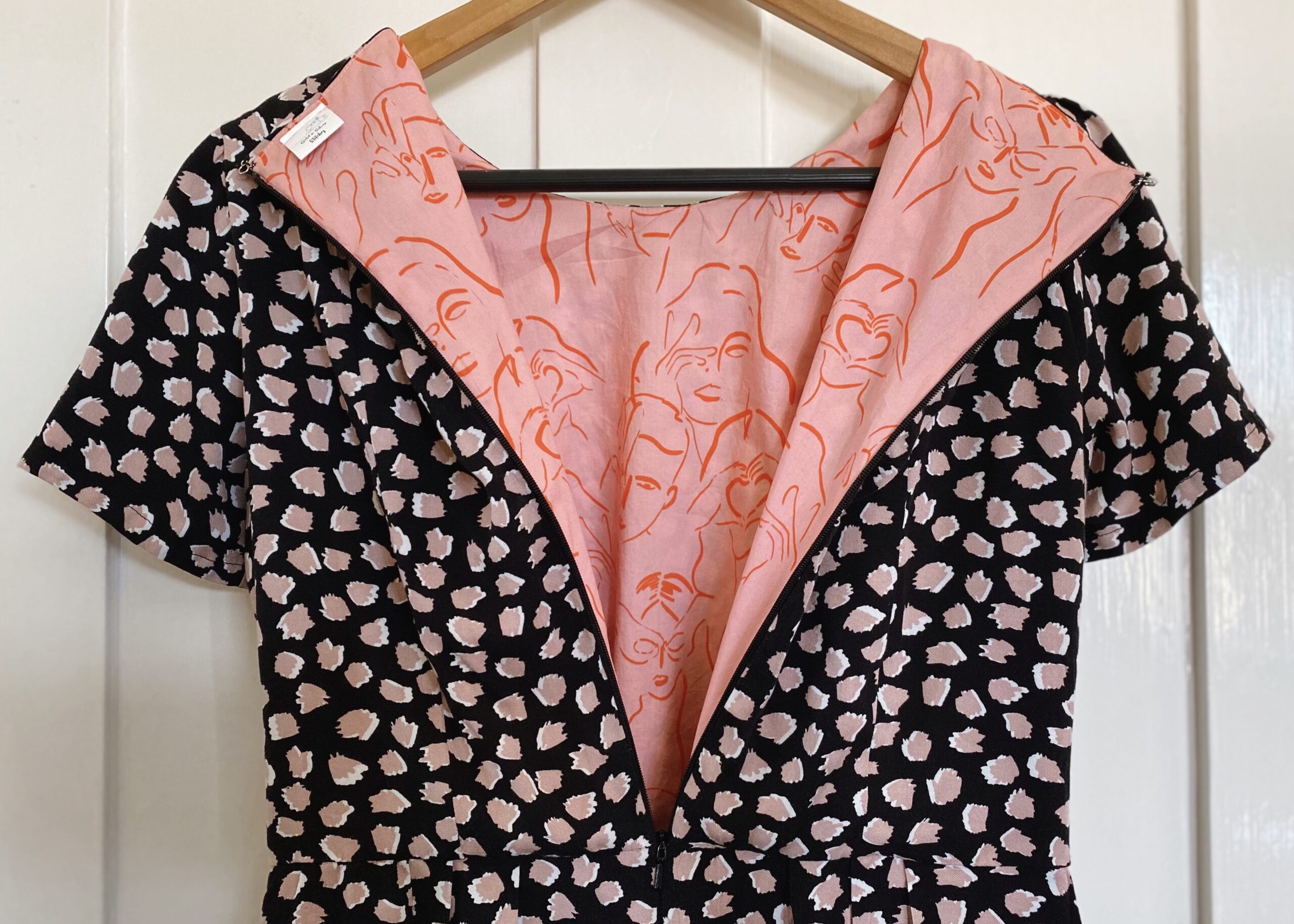 The bodice is fully lined, so I used some leftover cotton lawn from my Galentine’s Day Myosotis dress. I alway opt to add a fun printed lining if I am sewing something that isn’t too sheer — it feels opulent and is like a secret little love-letter to myself! I overlocked the fabric and lining together at the armhole seam, before slip-stitching the lining in place along the invisible zip and waistline.