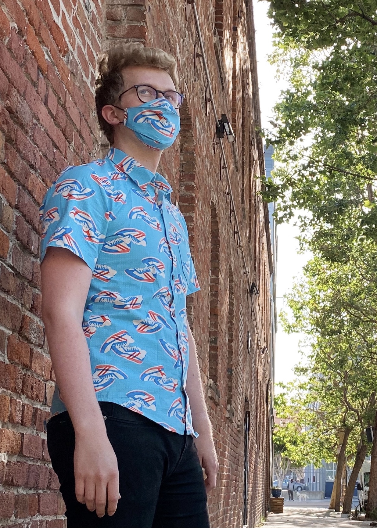 I took my time on this make and am so happy with my pattern-matched pocket! I also slipstitched the collar band and the button bands down by hand — I am usually fairly lazy and topstitch these on my machine, but I wanted to go the extra-mile for this make. I also made a matching 3D face mask for Simon, following the tutorial Marie from A Stitching Odyssey put out last year; this is my go-to mask pattern and I try and make a few from scraps to match my outfits.