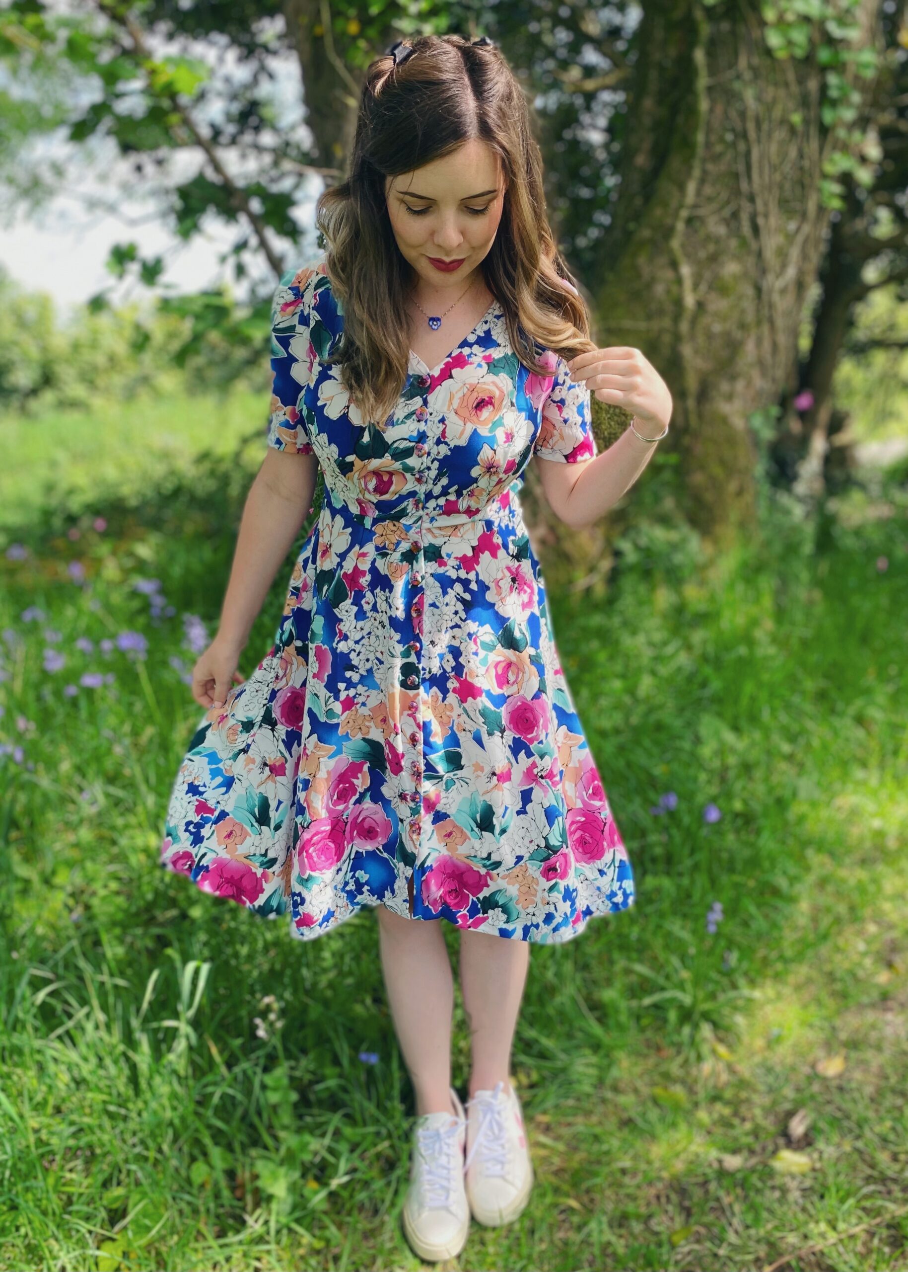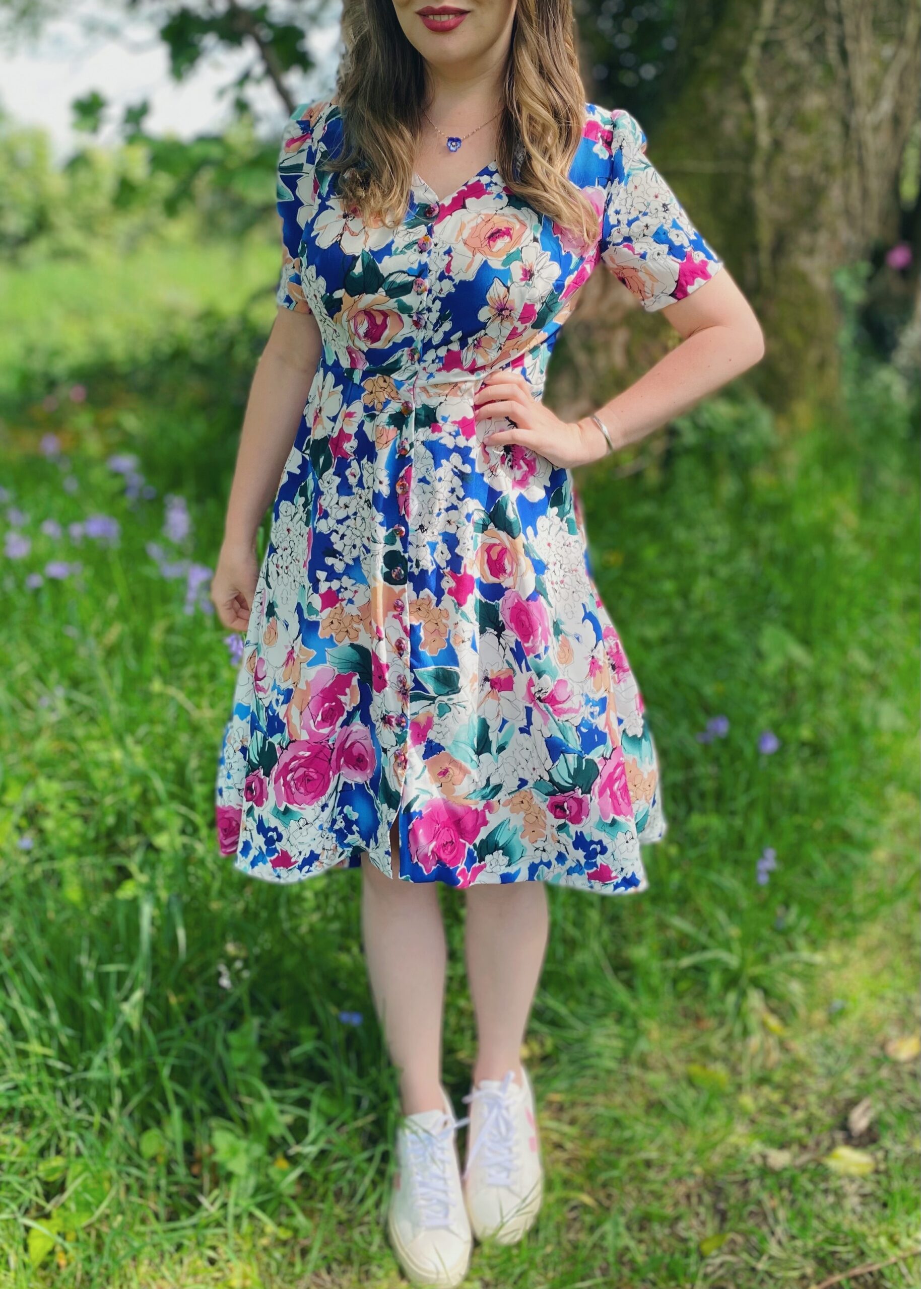I can’t put into words how joyful I feel in this dress: flirty, feminine, floral and 40s! I am so glad I really took my time to painstakingly sew slowly or by hand, as this finished garment is so worth it. I would like to make another tea dress Kew — perhaps an autumnal version in russet viscose or khaki linen — and I am planning to make the strappy sun dress version this summer!