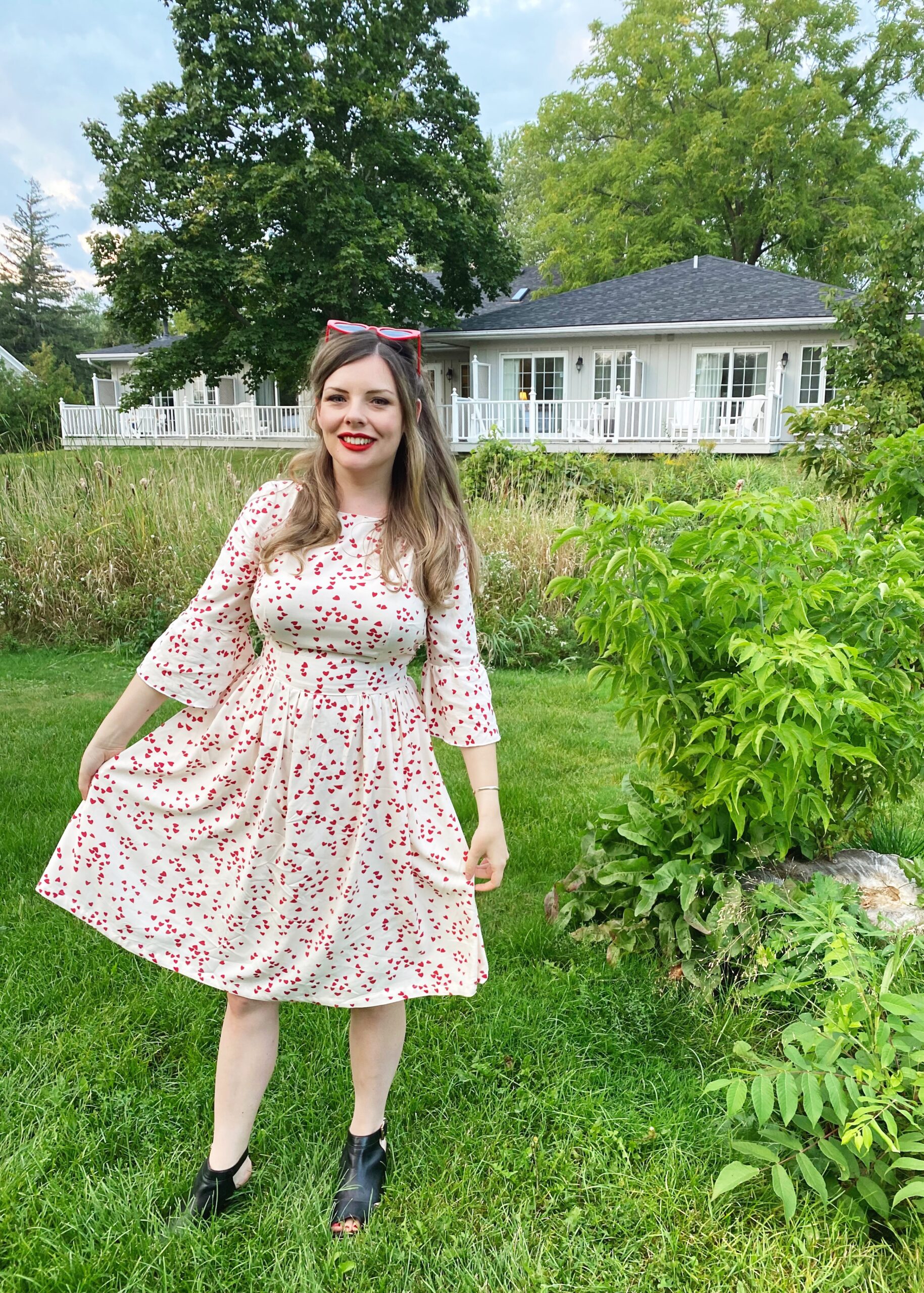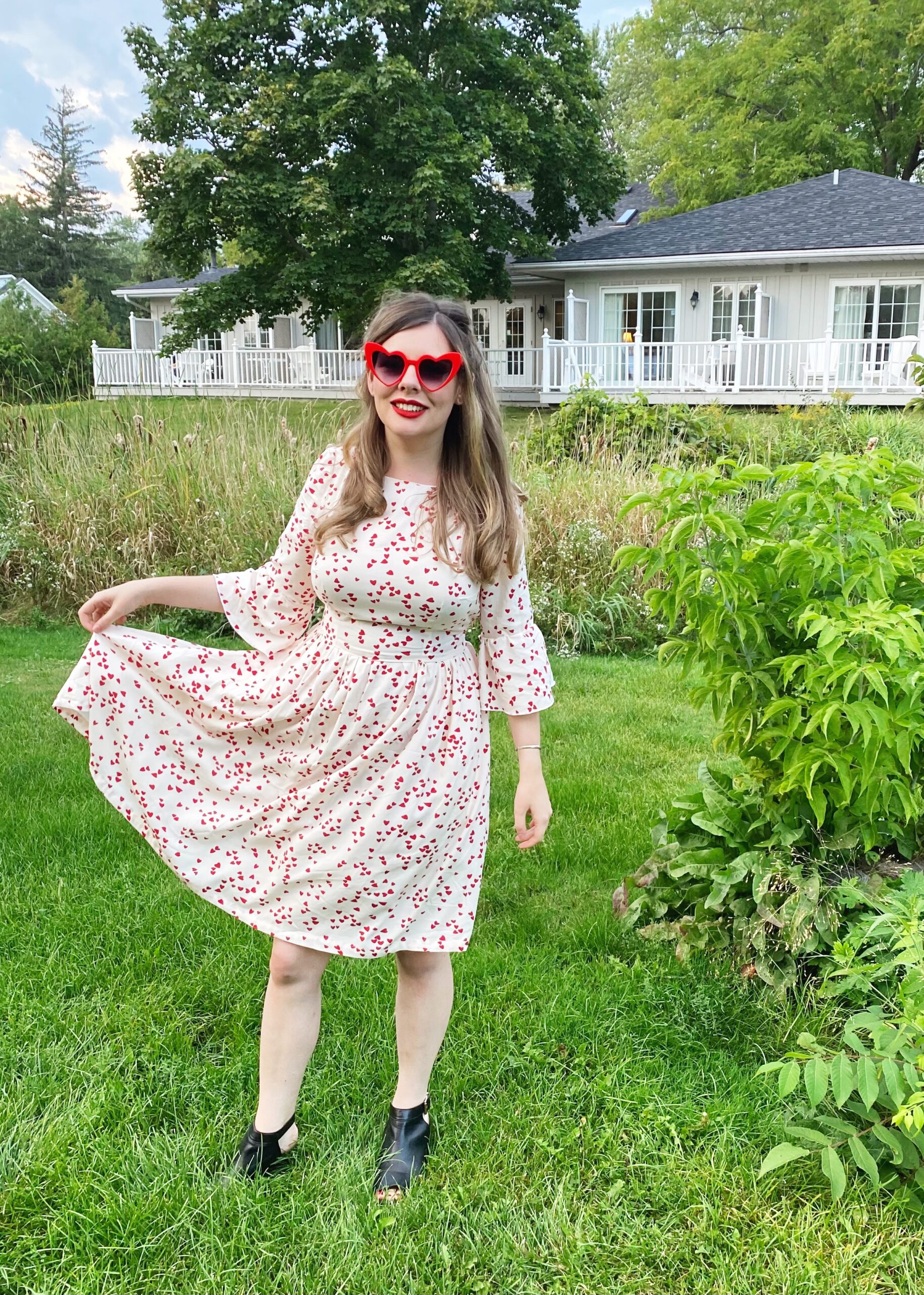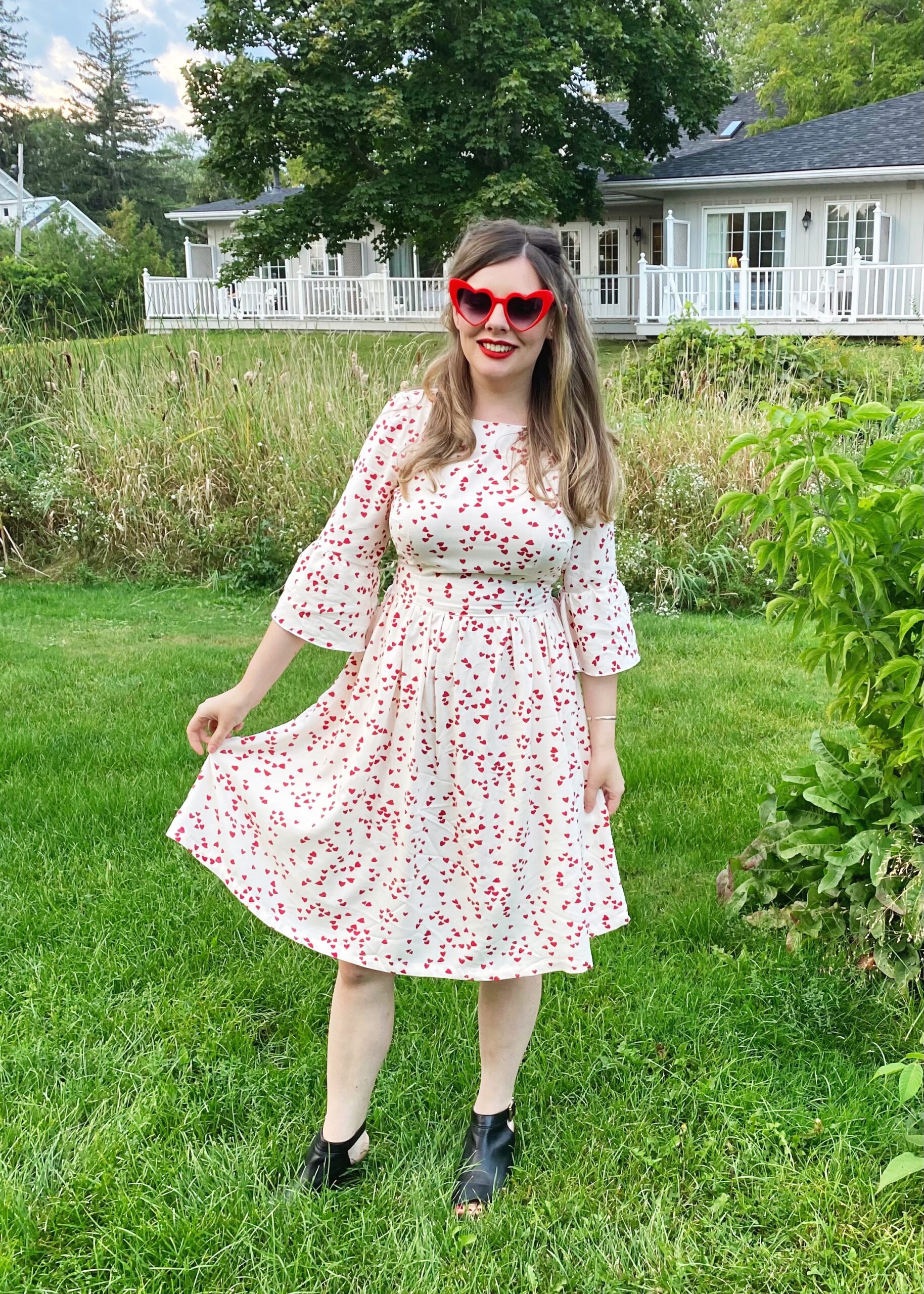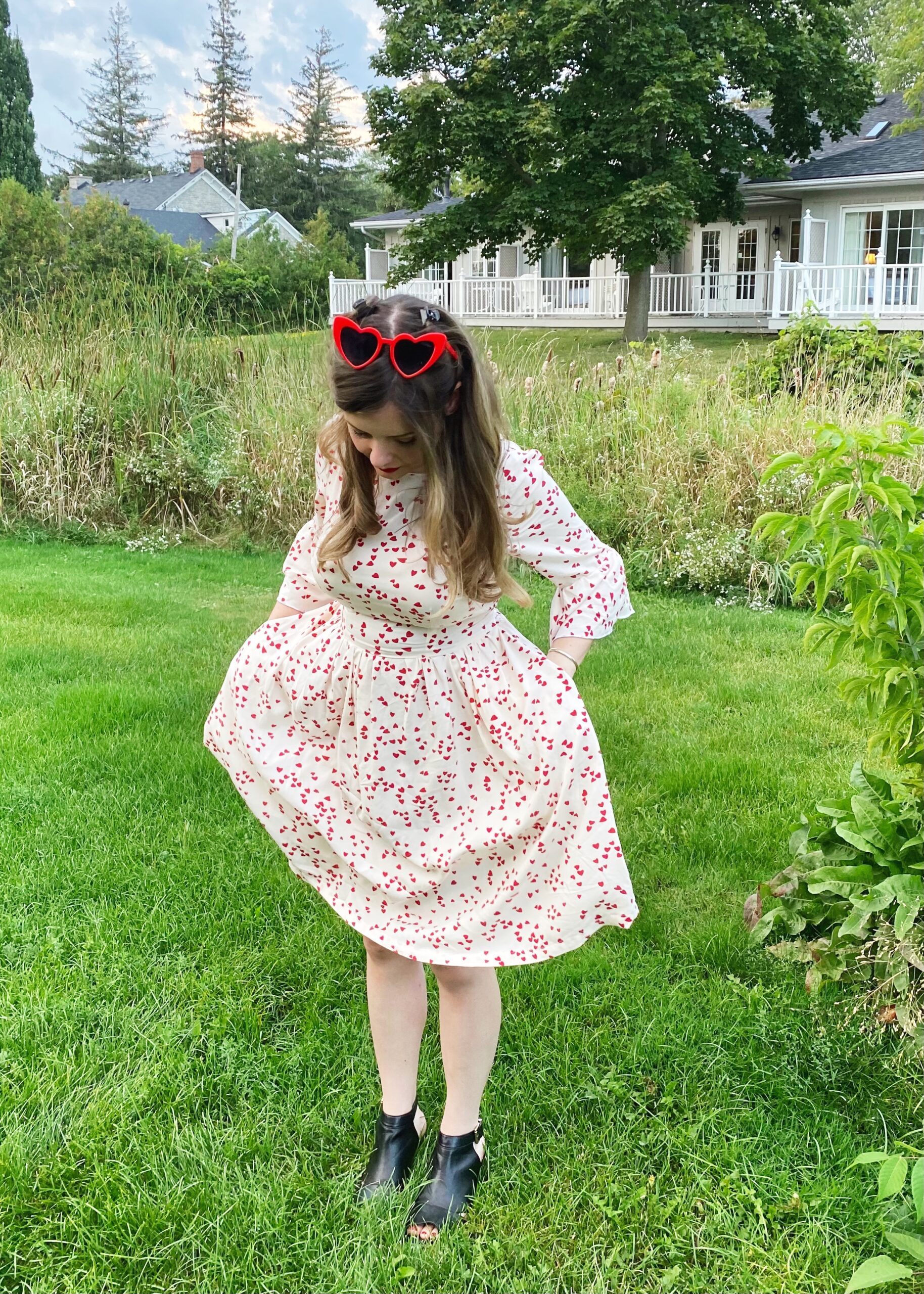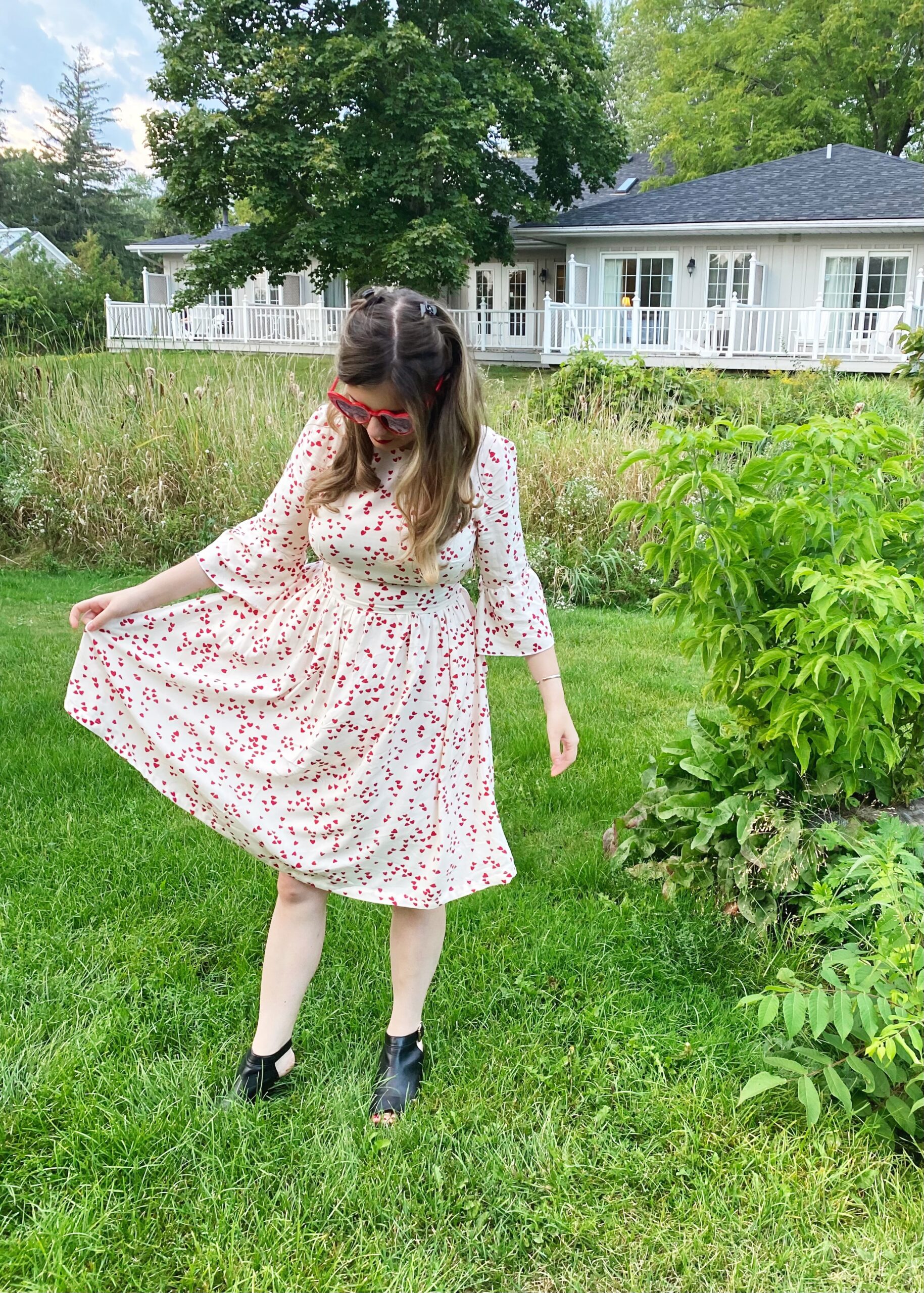 Greetings from Canada! 🍁 The borders recently reopened for international travel, so I jumped a the chance to visit and meet my boyfriend Simon in Canada for a mini road trip. Obviously I needed to make a new dress for the trip, so when Minerva gifted me 3.5m of this floaty, heart-print rayon challis for my #MinervaMake this month, I set to work — head over to Minerva to read up my blog post or scroll down for more details and photos!