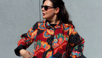 Lately I have been really gravitating towards big, bold botanical prints and this one is gorgeous — it is perfect for spring/summer and makes me daydream about Hawaii! I love the contrast between the splashy pink hibiscus flowers and golden leaves against the muted blue foliage and the cream frangipani flowers. The print is against an ivory background, which luckily isn’t sheer as this dress is unlined. I found this viscose challis to be exceptionally smooth and floaty, so I made sure to use my walking foot when sewing to avoid it slipping around too much! I used a tailor’s clapper when hemming and found that it helped this fabric to stay a lot flatter, so that is something I will definitely remember to continue to use when sewing with viscose. I ended up not using the fabric to make the tie loop at the back of the dress as it was prone to fraying and was quite fiddly, so opted to use a piece of yellow ribbon instead.
