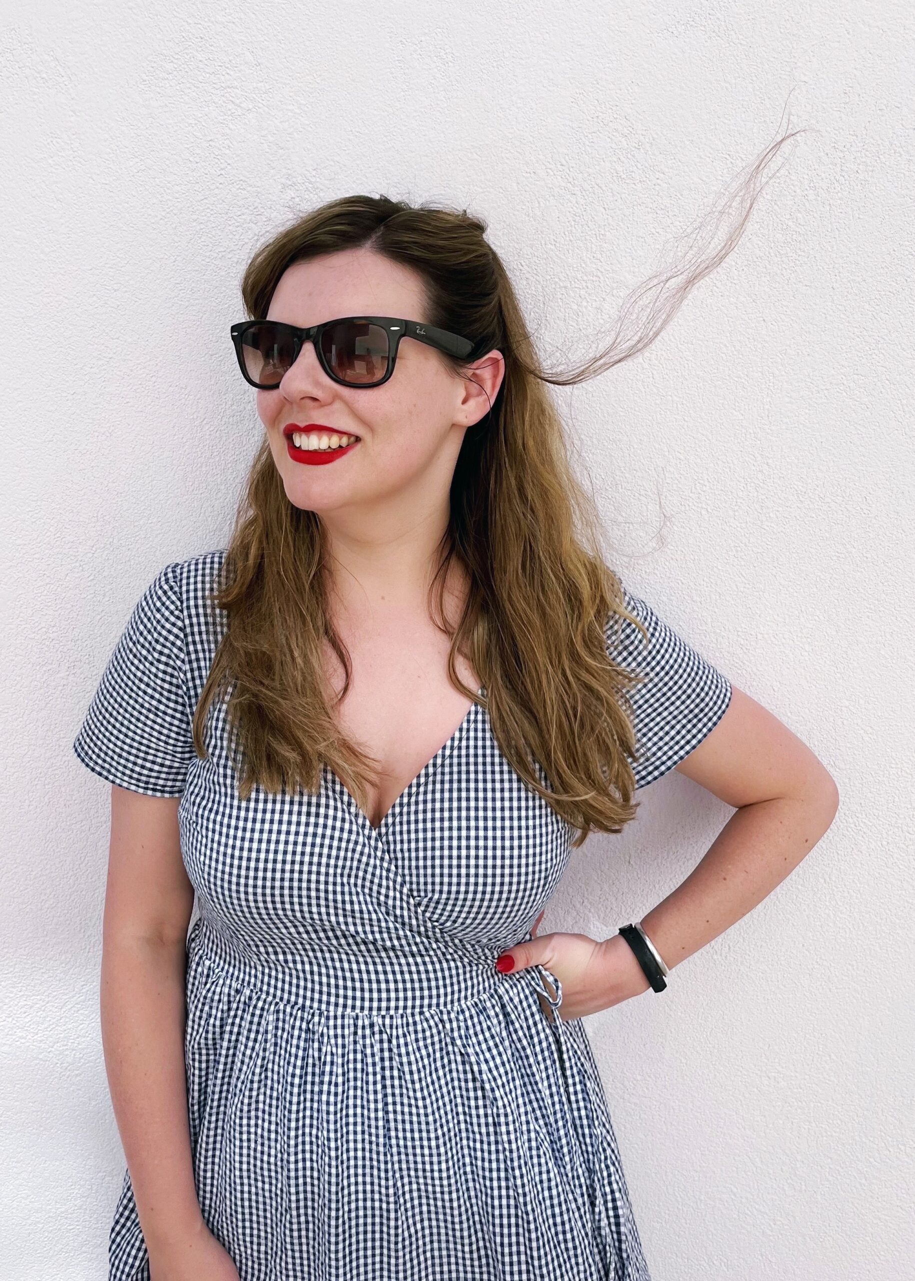 I had recently picked up 2.5m of this navy blue gingham seersucker from Fabrics Galore in their 30% birthday sale in April – I am a big fan of gingham fabric, as it looks so cheerful! This seersucker is medium-weight and a 100% cotton (as I knew I would be taking this dress on my honeymoon to sunny Greece, I was hunting for pure cotton and nothing blended with polyester), and has the typical puckered texture. Before I settled on the Hannah dress, I was toying with different ideas for this fabric, including a sweet little pinafore dress, but I was concerned that it would look a bit too much like I was dressing as Dorothy in The Wizard of Oz!*