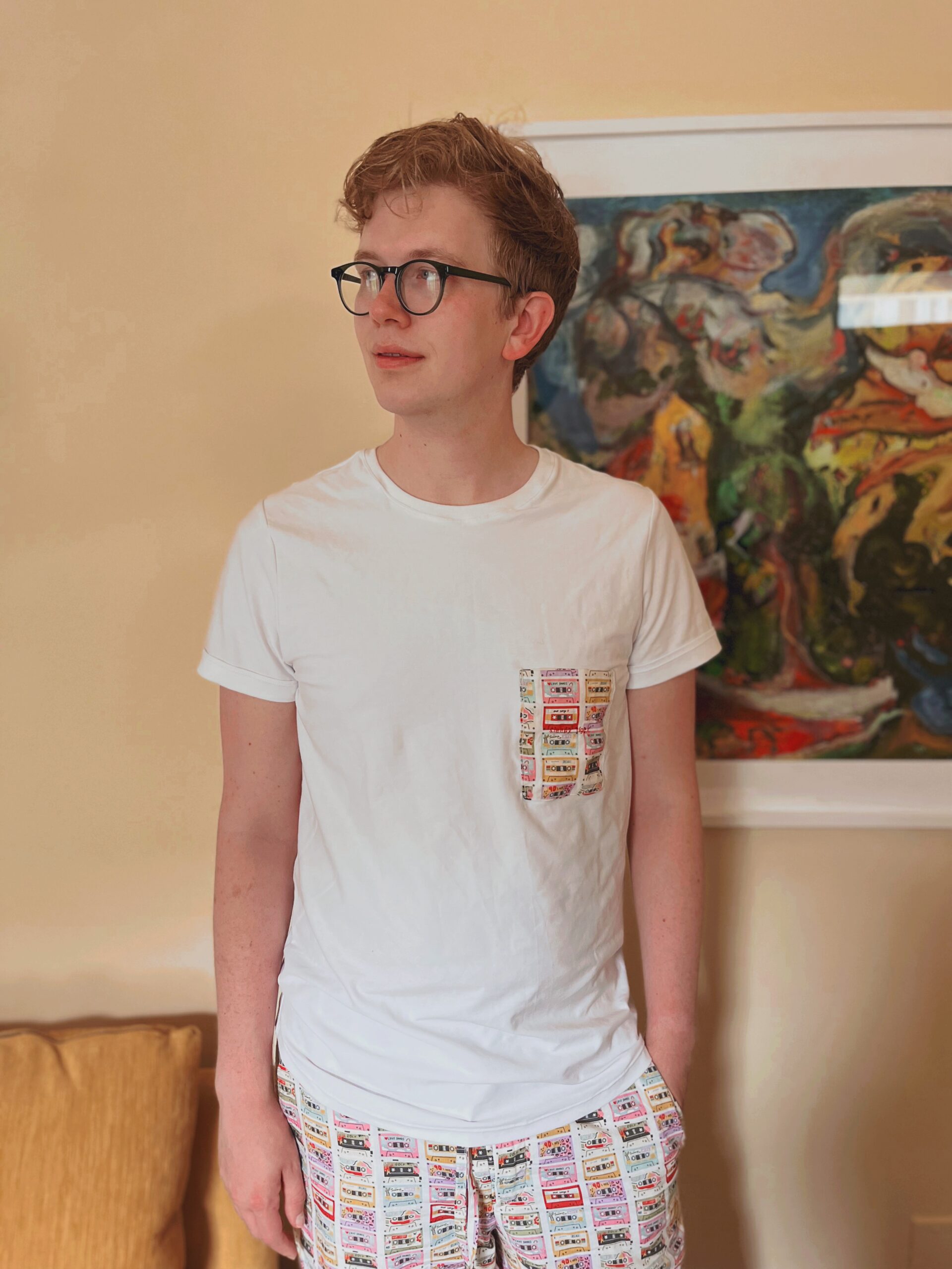 To match these new pyjama trousers, I whipped up the Waves & Wild Men’s Londboard T-Shirt in a plain white cotton/lycra jersey and some cotton ribbing on my overlocker in no time. This tee has a relaxed fit and gentle shaping in the torso, with the option of two different lengths and either a straight hem or a curved hem. The sleeves options are either long sleeves, short sleeves, or retro turned-up sleeves. I opted for the curved hem and the longer torso length, and made it up in a size Large. I also added a contrast pocket from the cotton broadcloth to make this t-shirt match the pyjama pants.