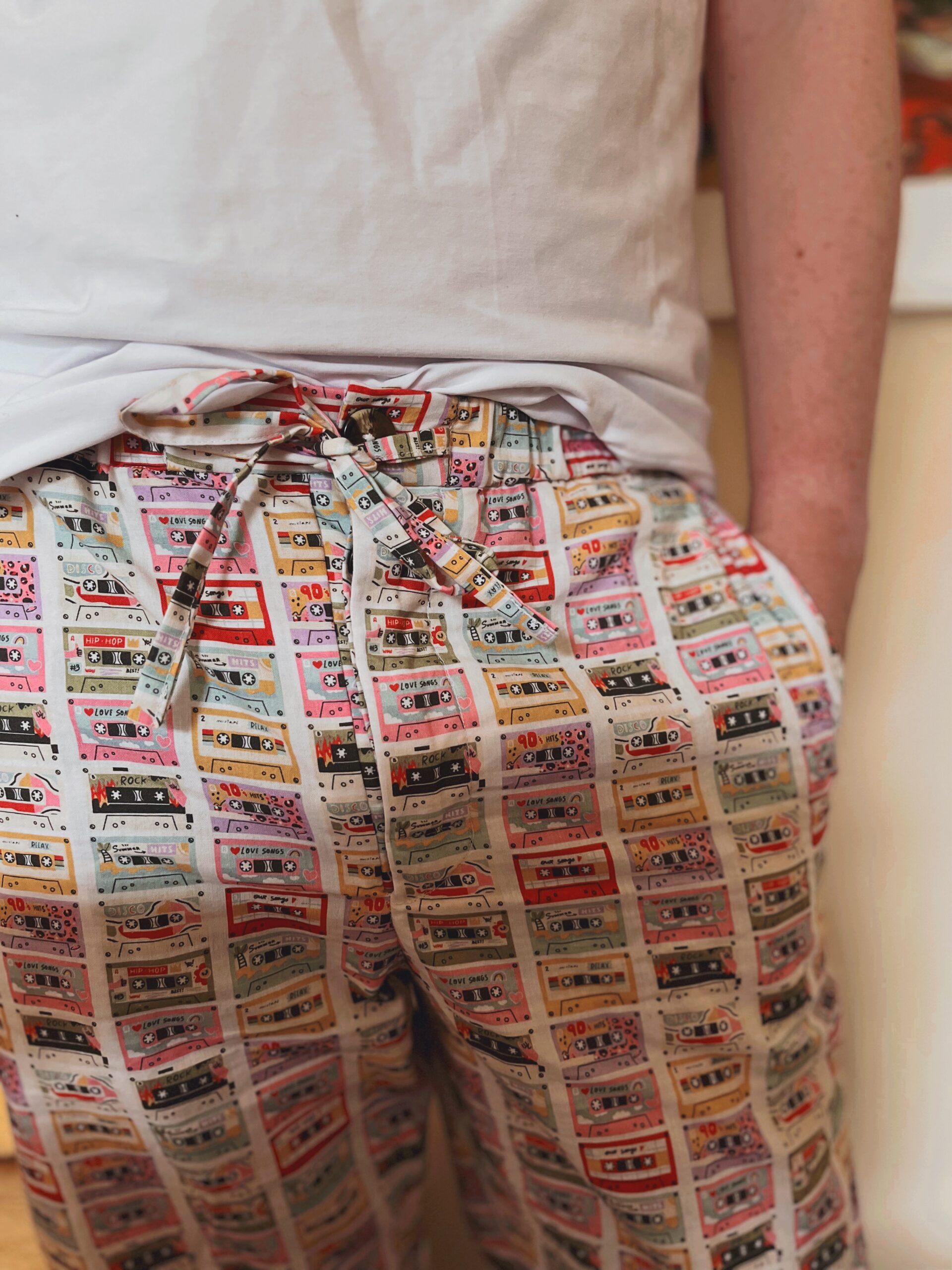 I had a rare flash of selfless sewing and made my husband a second pair of Simplicity 8519 pyjamas this September. I had previously made him a pair for Christmas a few years back in an amazing pretzel-print cotton, and I felt like it was high time to make him a new pair and with a ‘matching’ pyjama top. I found this Little Johnny cotton broadcloth from Hey Sew Sister and it is adorable, with little cassette tapes printed with 90s hits, disco jams and love songs mixtapes. Super kitsch, like all good pyjamas should be!