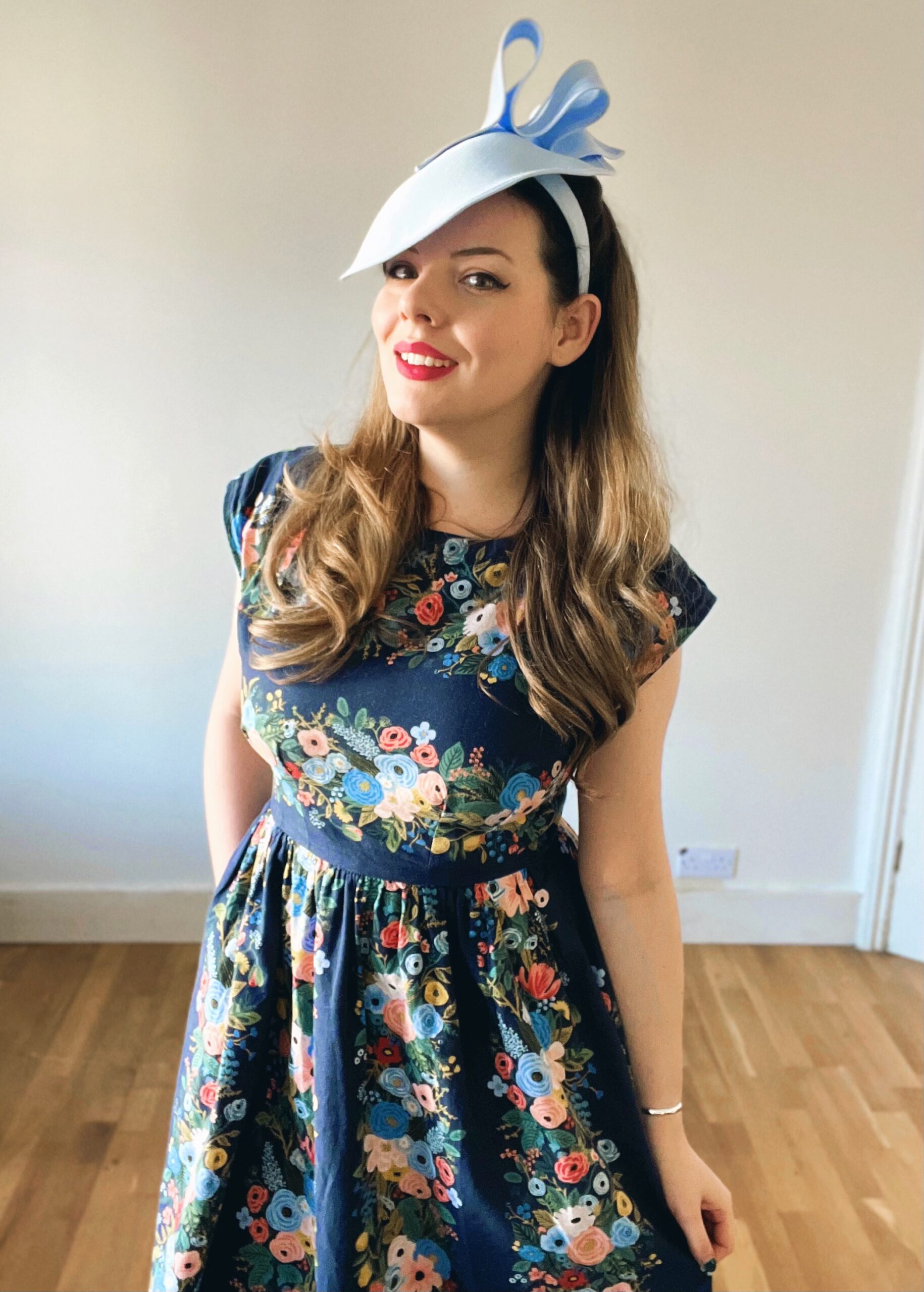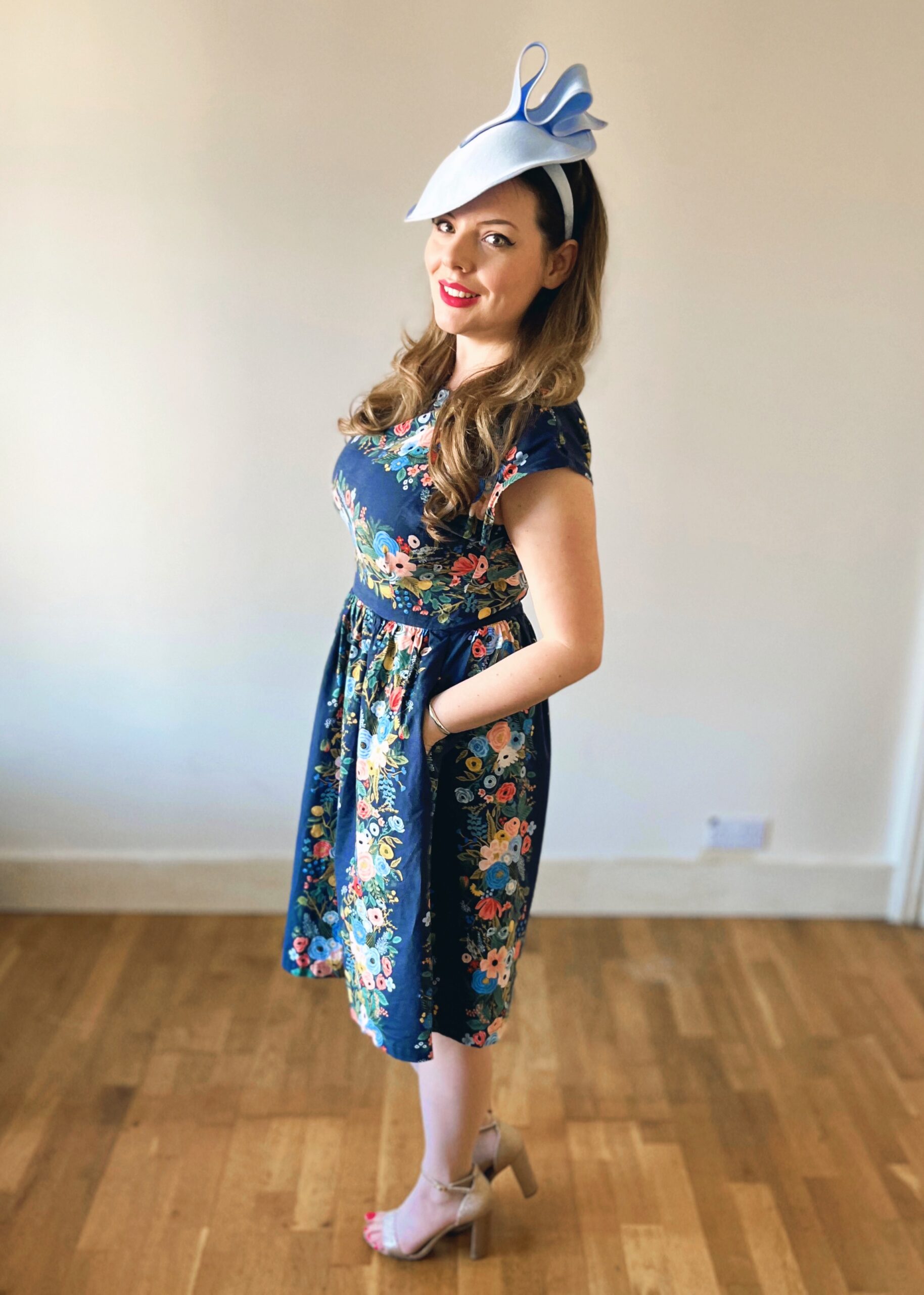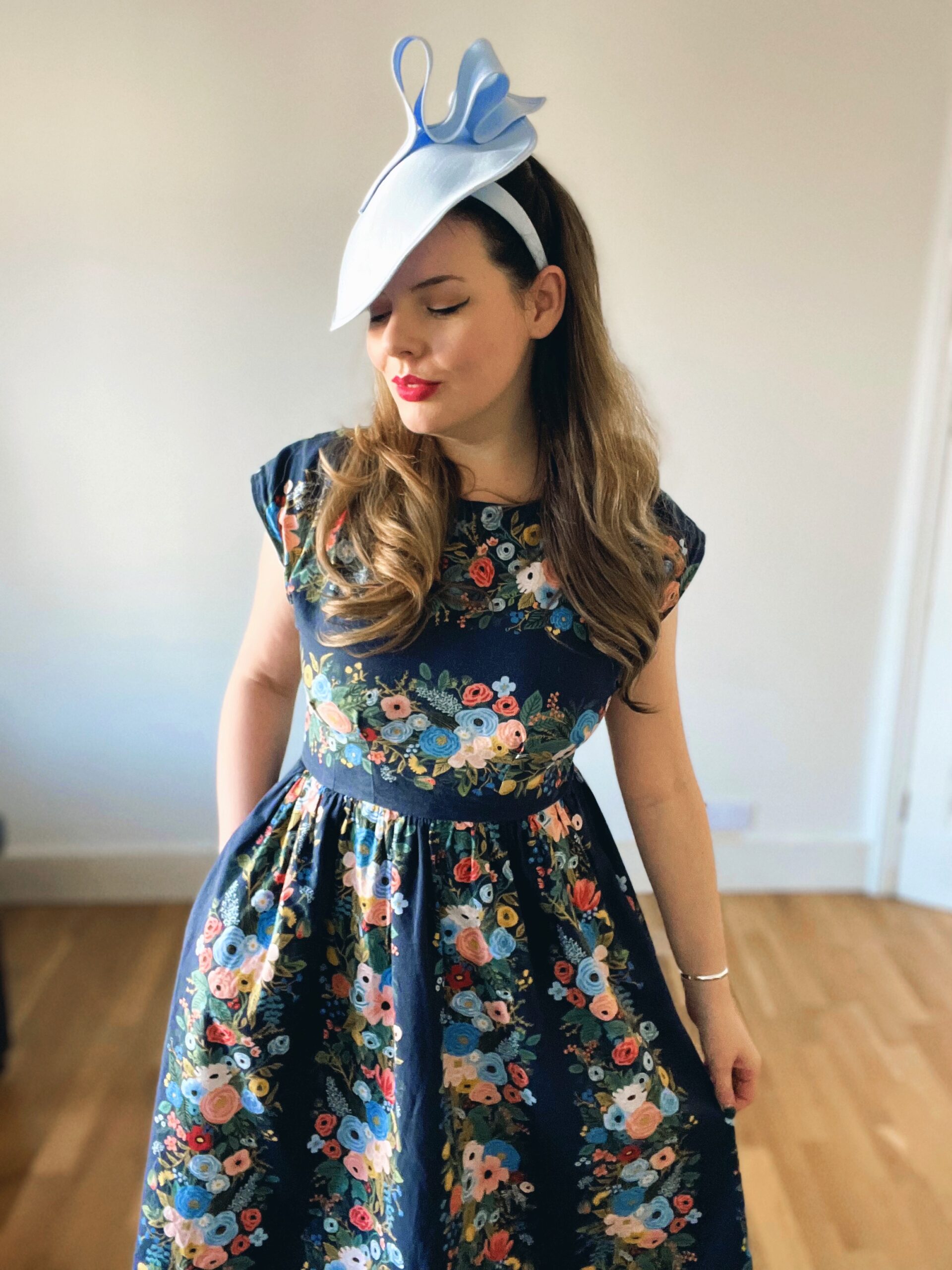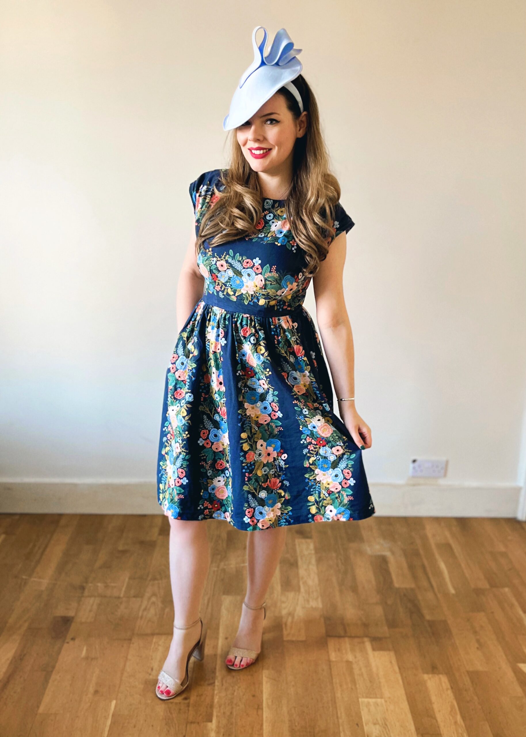 Last summer, the lovely @cath_craft and @secret_life_of_a_seamstress held an Instagram challenge, where the goal was to mash up two different patterns to create a brand new garment. I am quite fond of pattern hacking (although I think I have the tendency to play it a bit safe and never go too wild…), so I jumped into this challenge and got a dress that I have been wearing pretty much non-stop since I finished it in July — this is the reason I have been so slow on getting photos and a blog post online! I have worn this dress to so many special occasions: my work summer party in Munich, my friend Naiz’s mehndi party, out exploring the giant sequoia forests in Yosemite, and to a friend’s wedding with Simon in Germany (worn the same way I styled it here, with sparkly heels and my sky-blue fascinator) ♥️