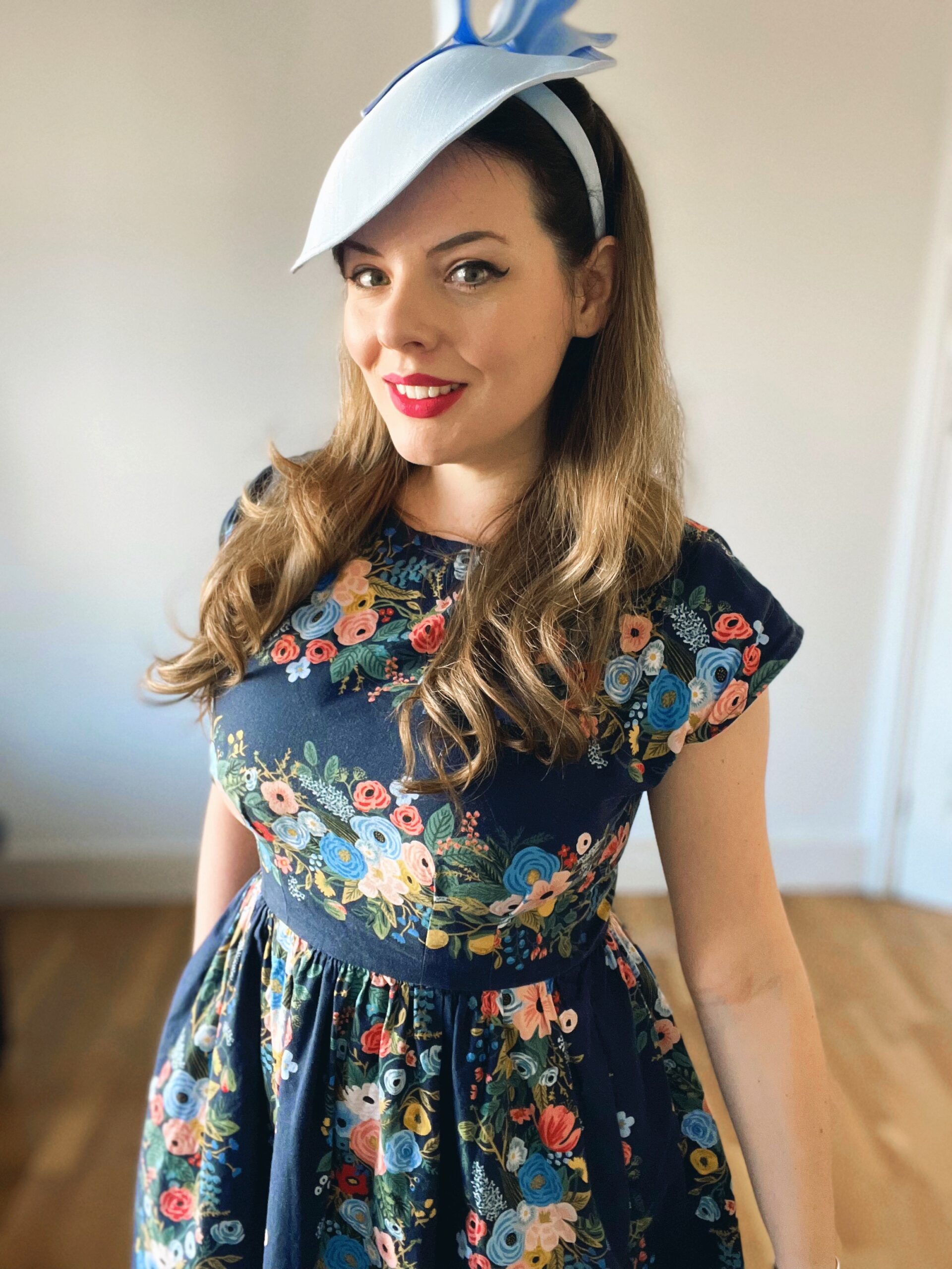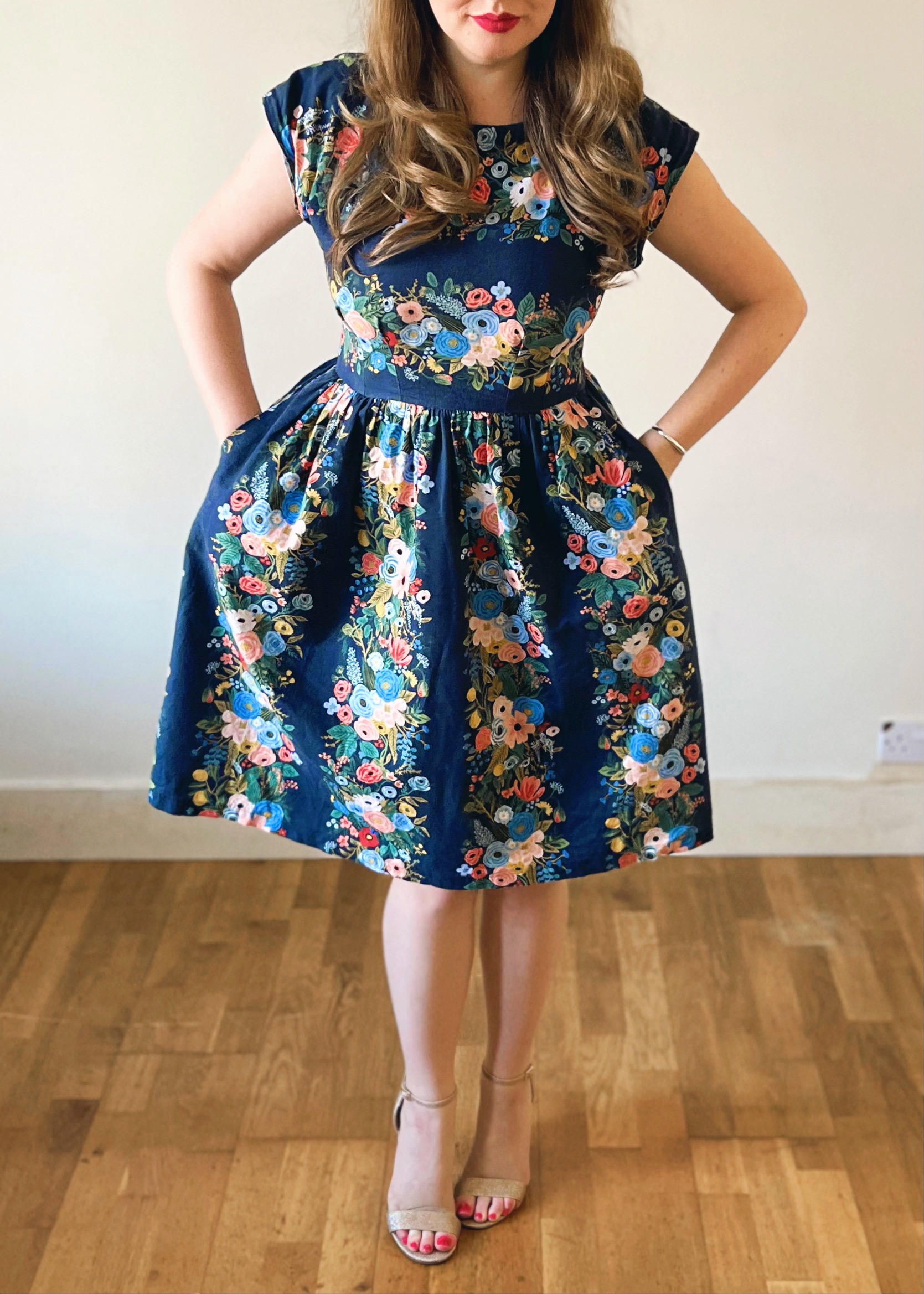 I genuinely adore Rifle Paper Co designs so much, and have a couple of their fabrics earmarked for special makes in my stash. I got this 2.5m of this ‘Garden Party Vines ‘ cotton from Emmercery (which has sadly since closed) in a Black Friday sale a couple of years ago, and decided to take the plunge and use it for #SewMashUp challenge. This cotton is medium weight, with a smooth hand and crisp drape. It holds gathers beautifully and was super easy to work with, and the colours of the flowers are so vibrant on the navy background. I wish I had bought several more metres, I am that infatuated with Rifle Paper Co.