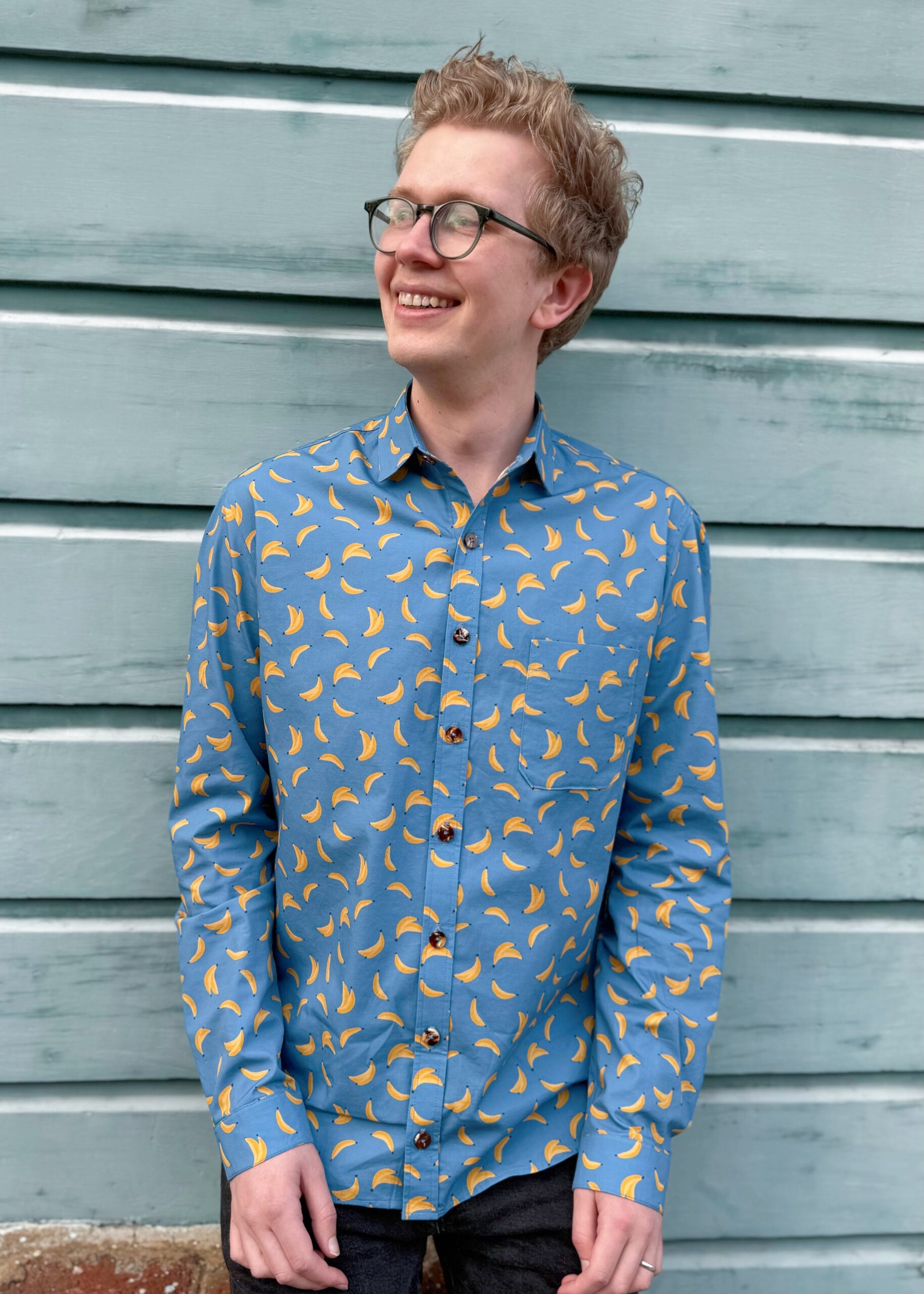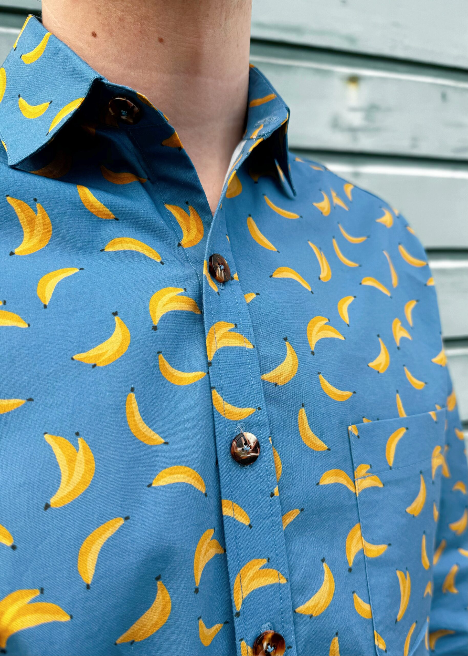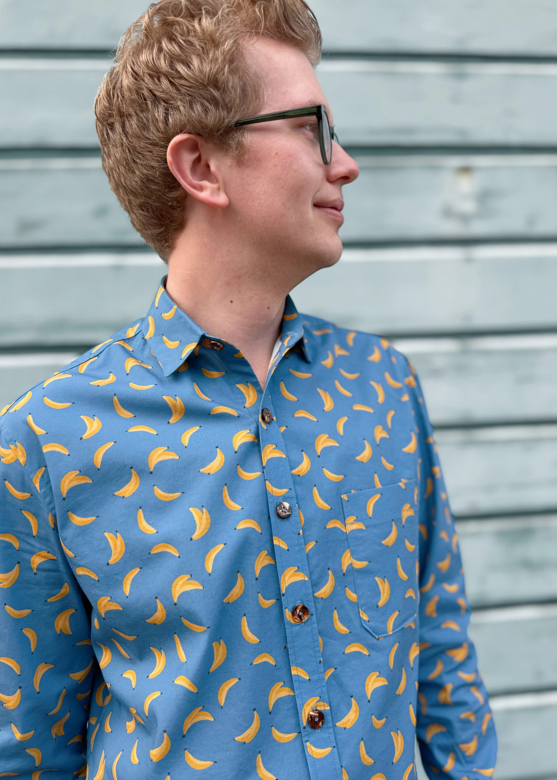 I took a quick trip to visit Simon in San Francisco at the end of February and managed to squeeze in time to make him this new shirt, which is… extremely bananas. Simon was fairly insistent he wanted a banana-print novelty shirt and what kind of wife would I be if I didn’t indulge in his whims…? 🍌