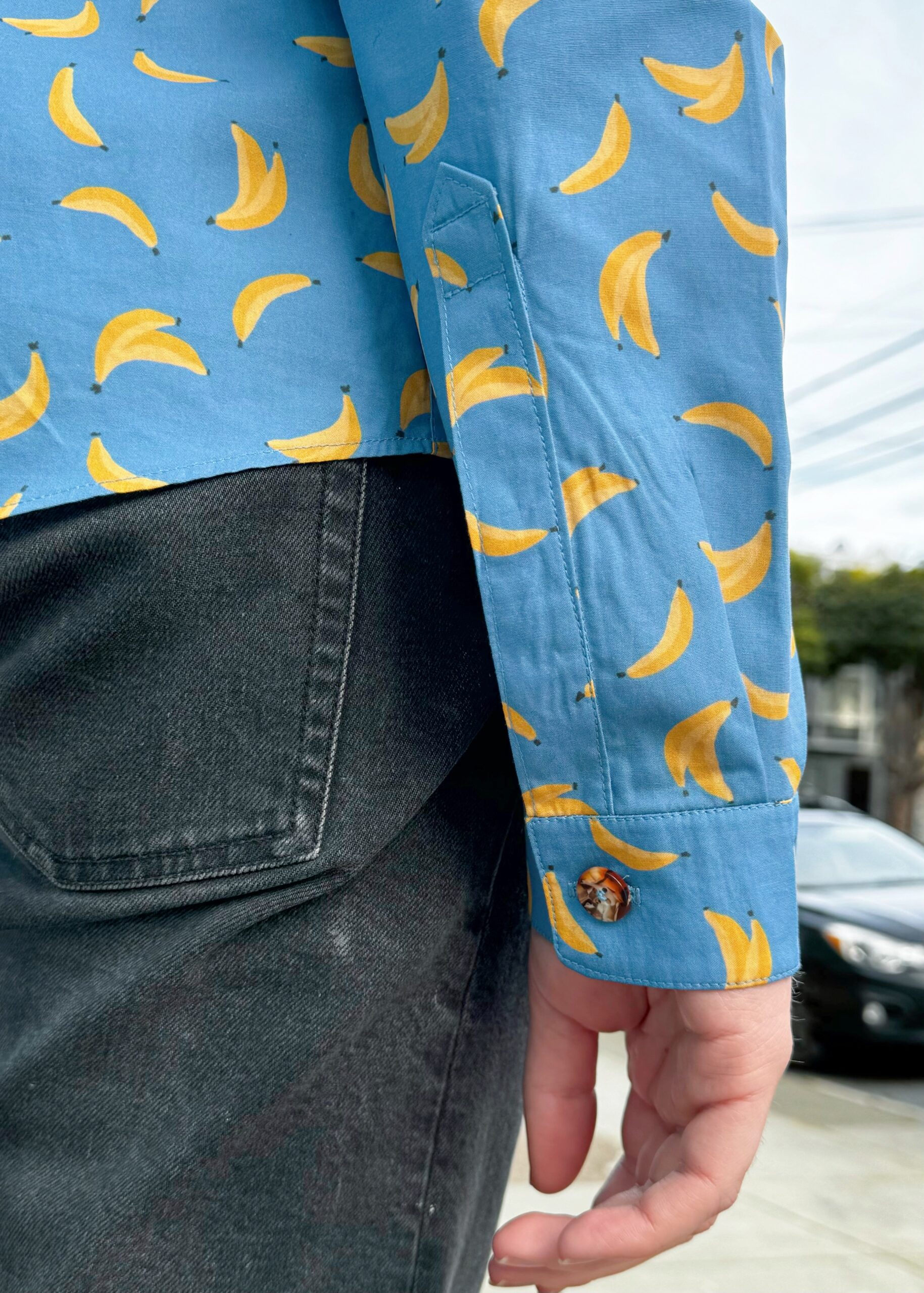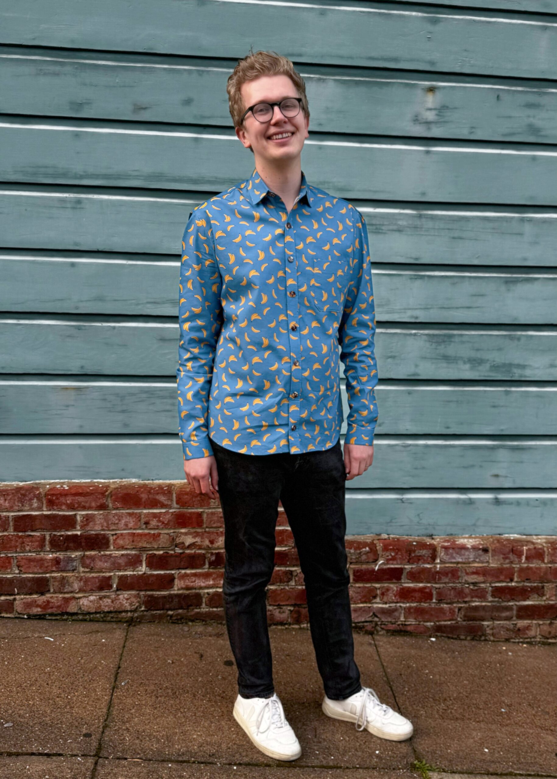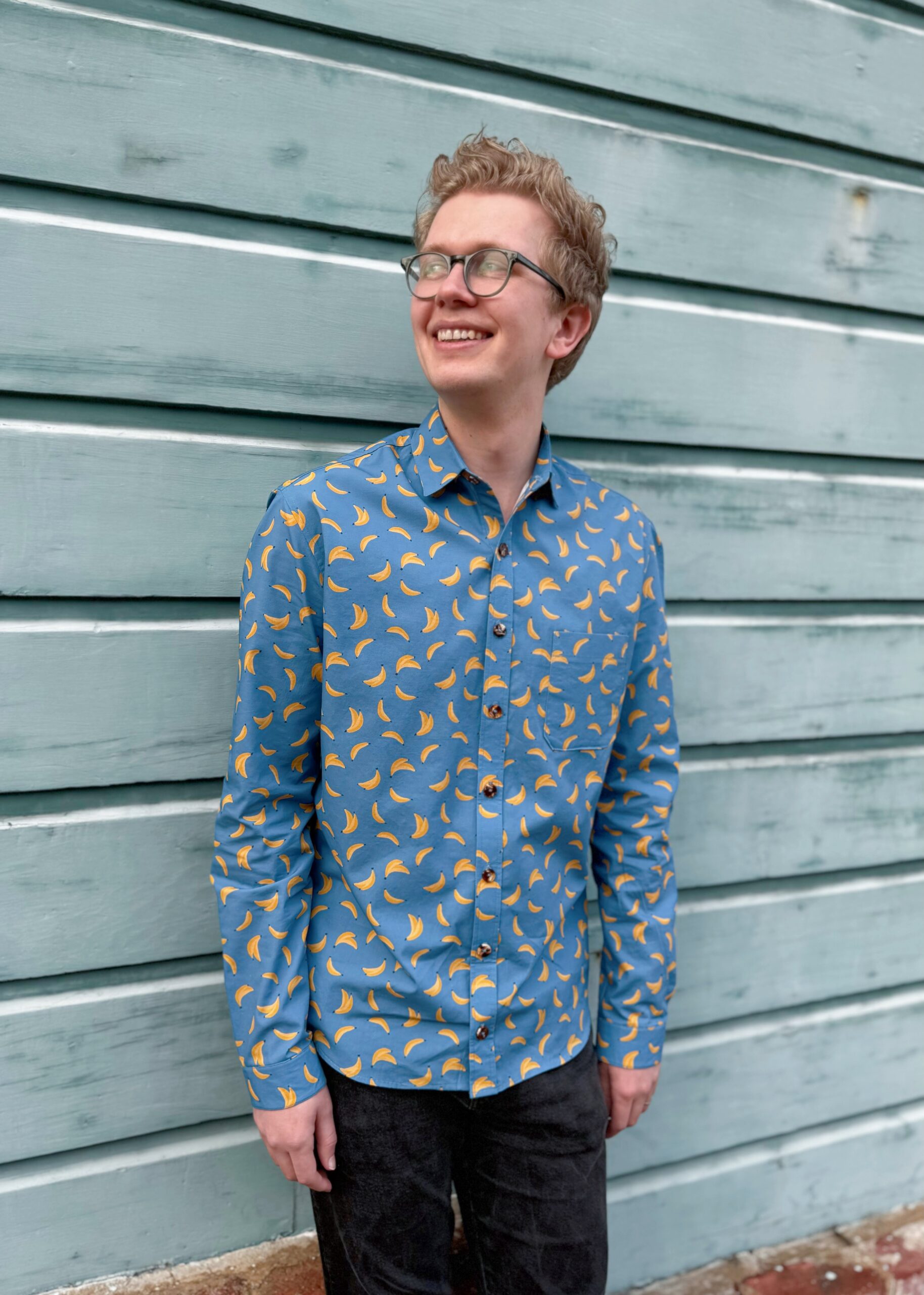 I took a quick trip to visit Simon in San Francisco at the end of February and managed to squeeze in time to make him this new shirt, which is… extremely bananas. Simon was fairly insistent he wanted a banana-print novelty shirt and what kind of wife would I be if I didn’t indulge in his whims…? 🍌