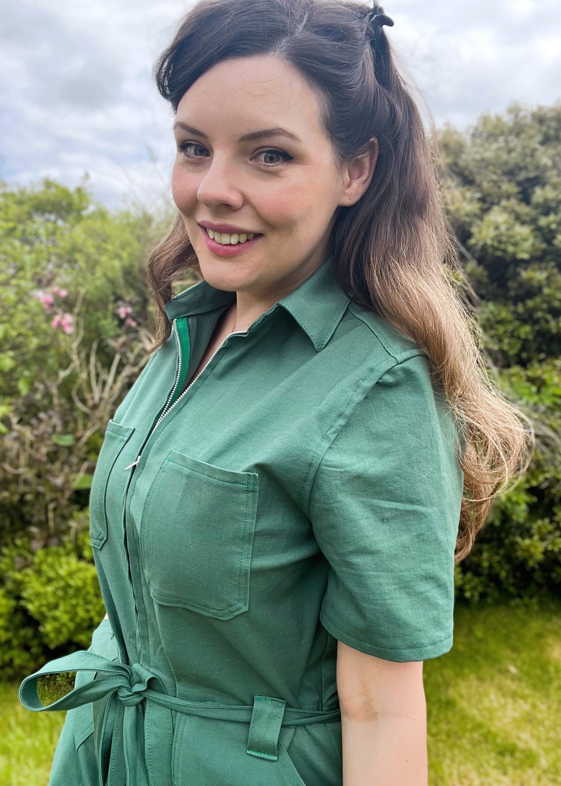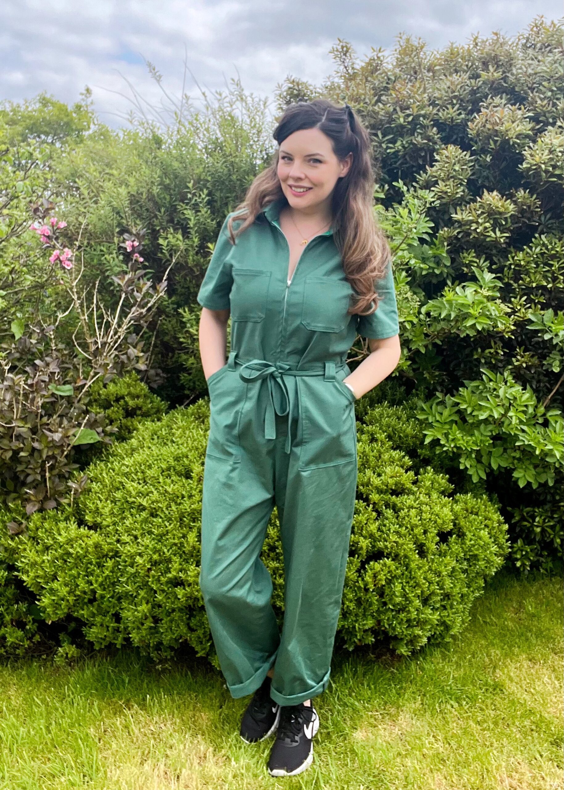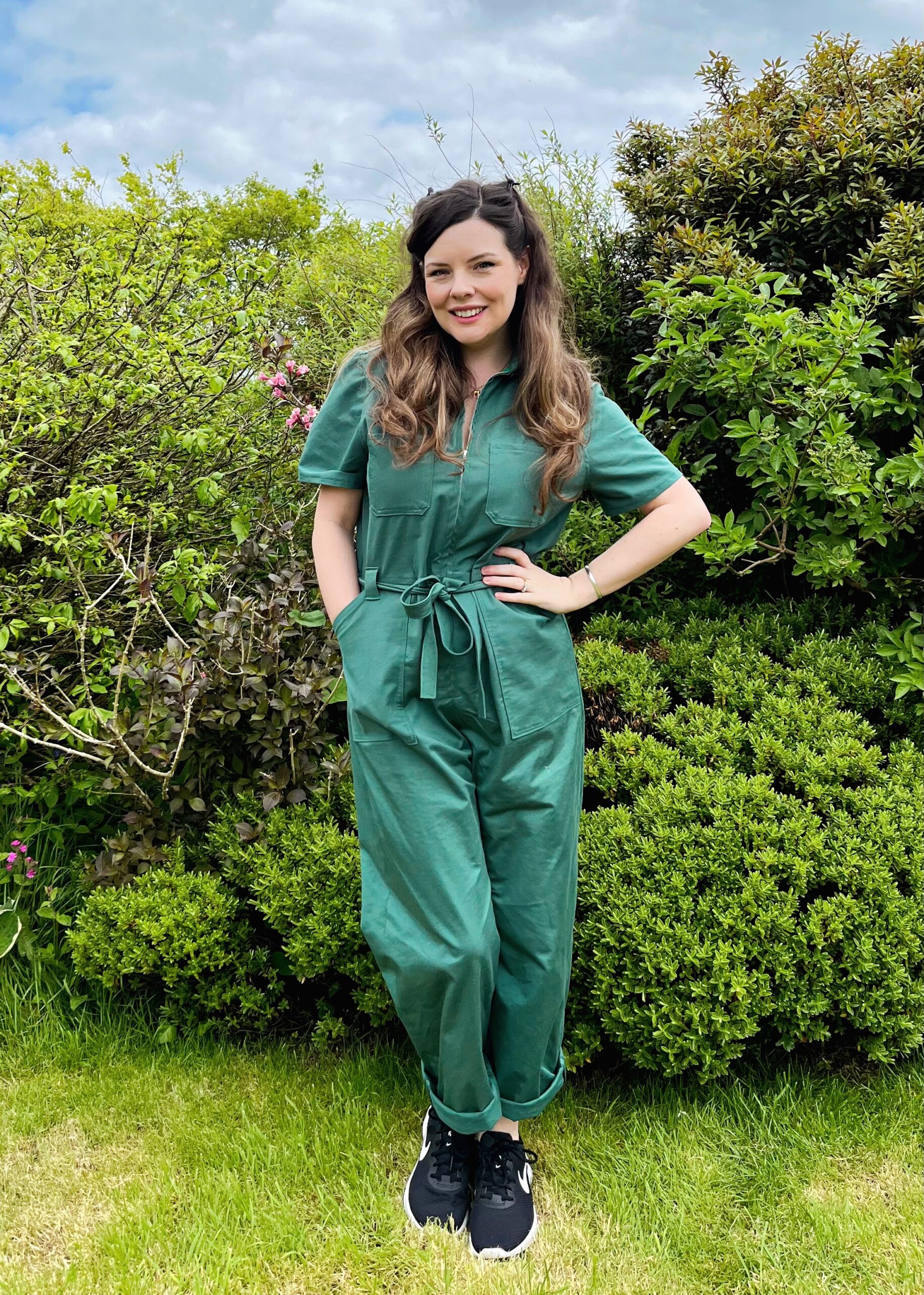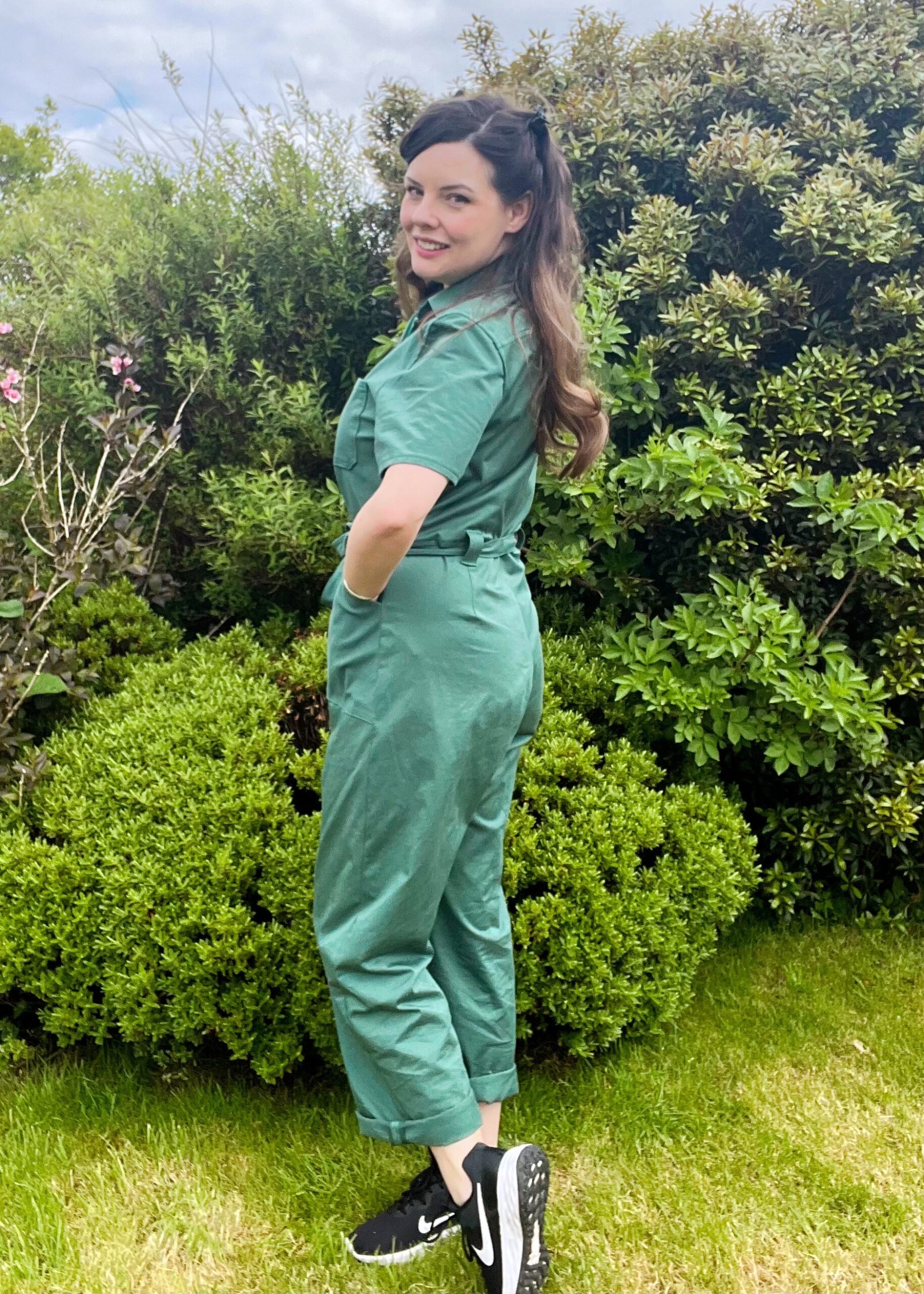 After browsing around online, I was really inspired by a fern green boilersuit from Joanie Clothing; I wanted to make something quite similar, but with a few tweaks. Boilersuits are usually made up in hard-wearing, heavier-weight fabrics, like drill, canvas, denim, and twill, so finding the right fabric was going to be key to the success of this sewing project.