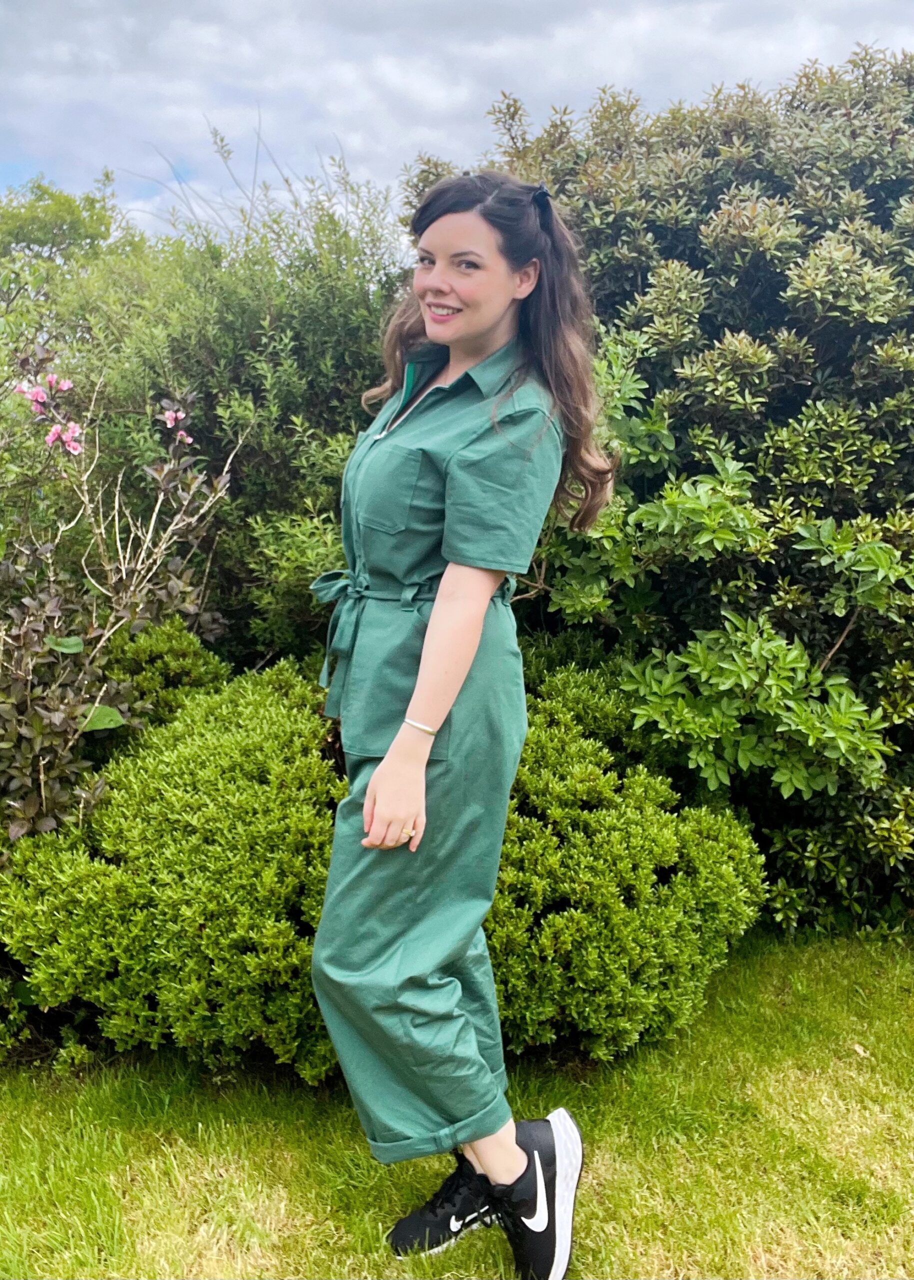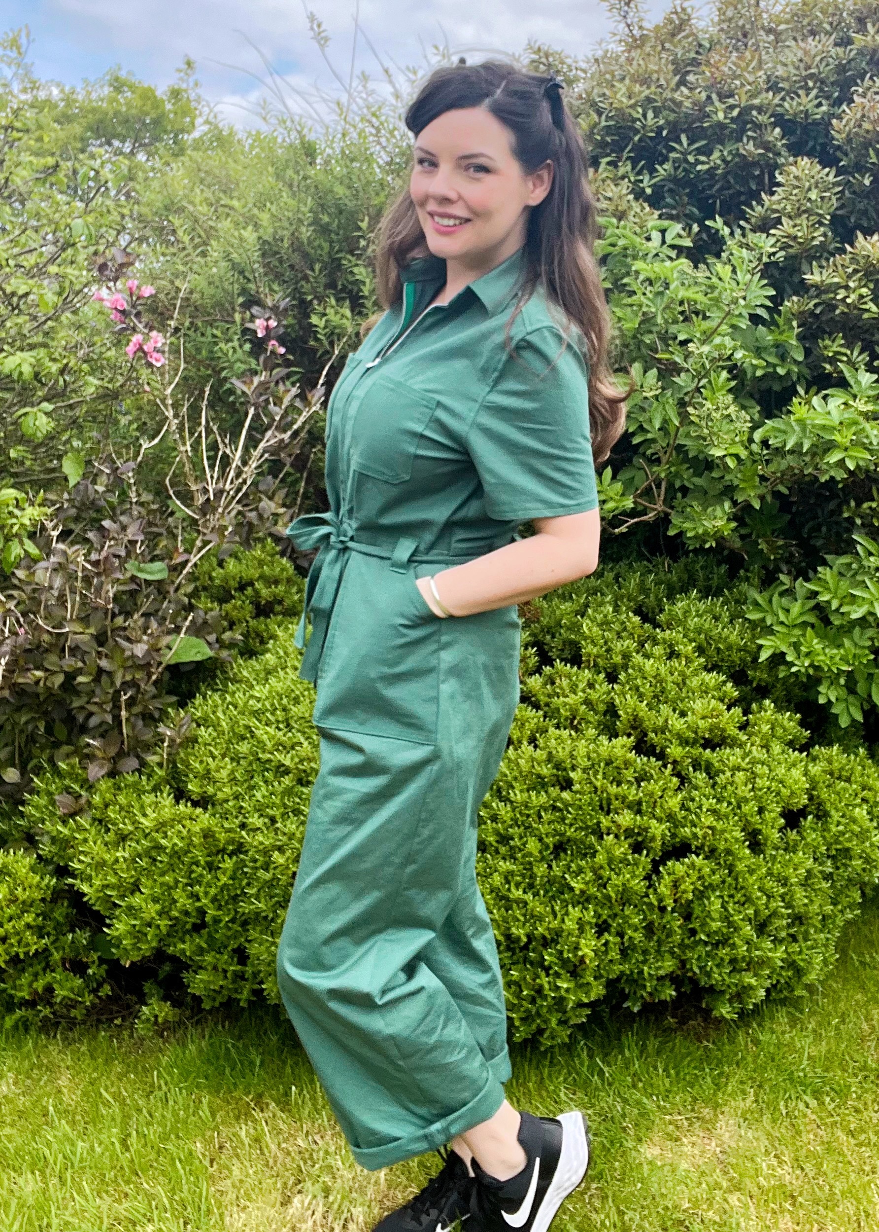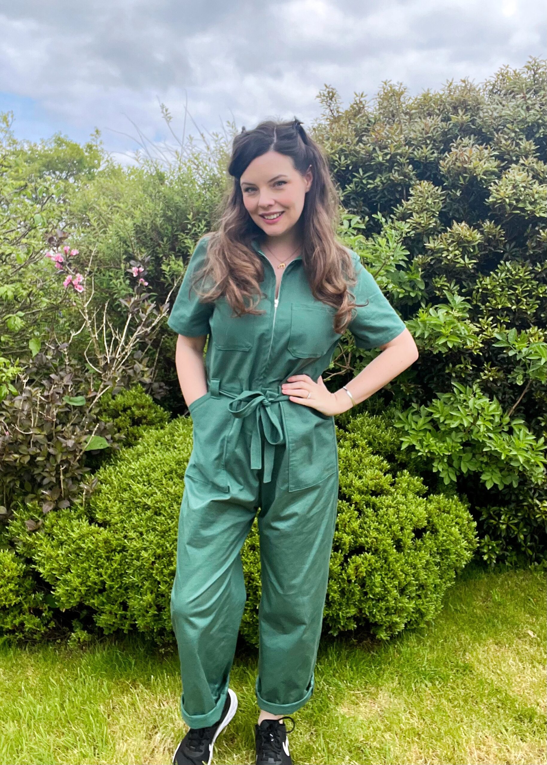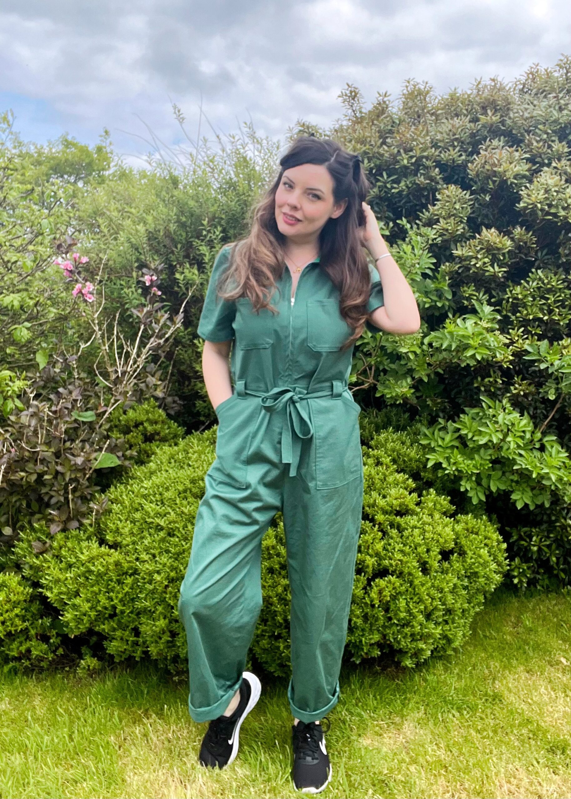 After browsing around online, I was really inspired by a fern green boilersuit from Joanie Clothing; I wanted to make something quite similar, but with a few tweaks. Boilersuits are usually made up in hard-wearing, heavier-weight fabrics, like drill, canvas, denim, and twill, so finding the right fabric was going to be key to the success of this sewing project.