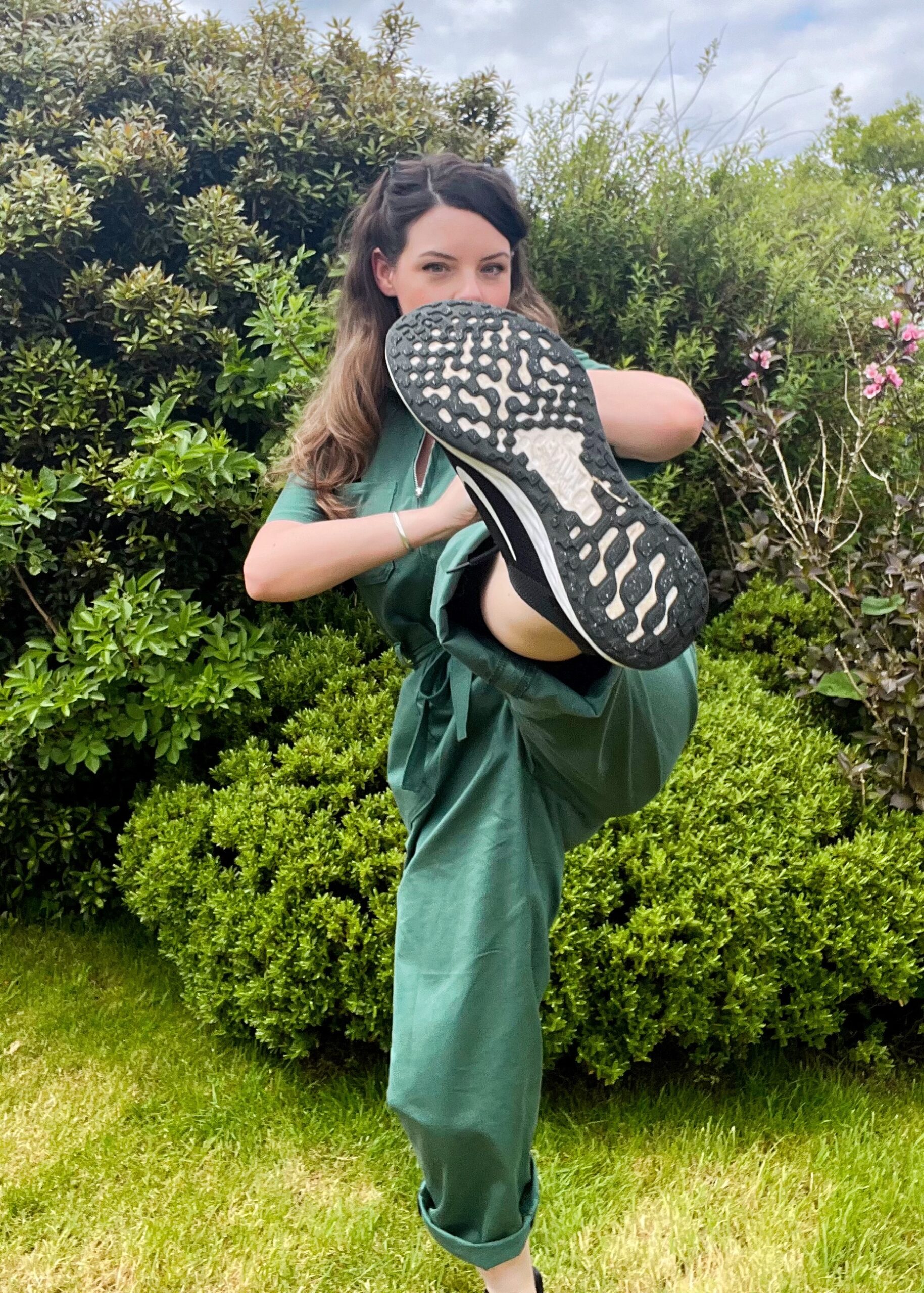 I am really happy with the fit, although I think I really should have made a muslin of the trousers, as the rise is quite low on me, although not enough to really bother me. This boilersuit is really comfy and I still have a full range of motion, but I need to challenge myself and start making fitting adjustments to trousers! The pockets at the hip are a great size for stashing essentials, like a phone, a debit card and a Twix, although I kind of wish there were some welt pockets at the back too. The instructions were clear and easy to follow, especially for setting in the zip, but I do think this is a more intermediate project for a sewist; there is a lot of topstitching and you need to sew through multiple thick layers at points. I would recommend using a similar substrate as mine, as the stretch fibres woven into this cotton twill make this extra comfortable to wear and move in. I wore this boilersuit to see Dessa at her most recent gig in London (fun fact: she was also wearing a boilersuit and she was incredible) and could jump and dance to my heart’s content.