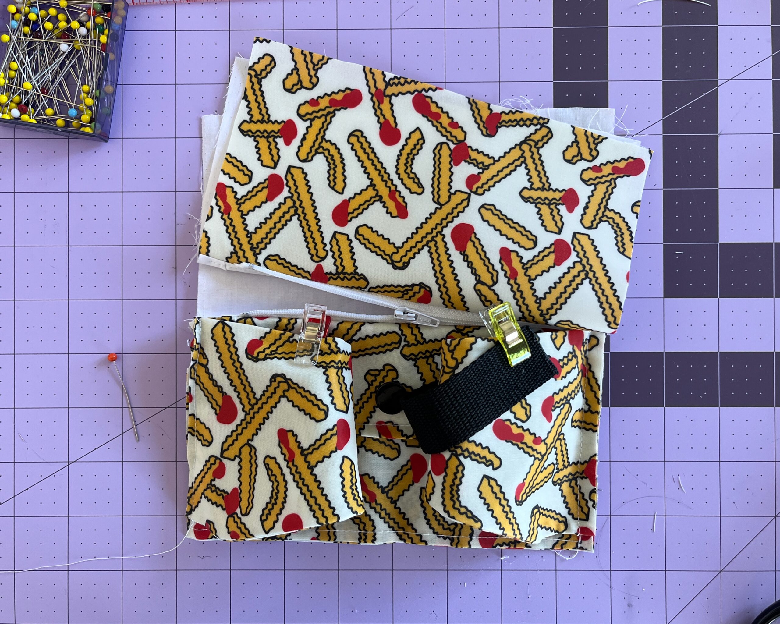 - Follow the remaining Friday Pattern Co instructions to insert the zipper, and to attach the lining and the back bag section. Make sure you roll your extensions out of the way and ensure you don’t catch them when sewing the side seams together.
