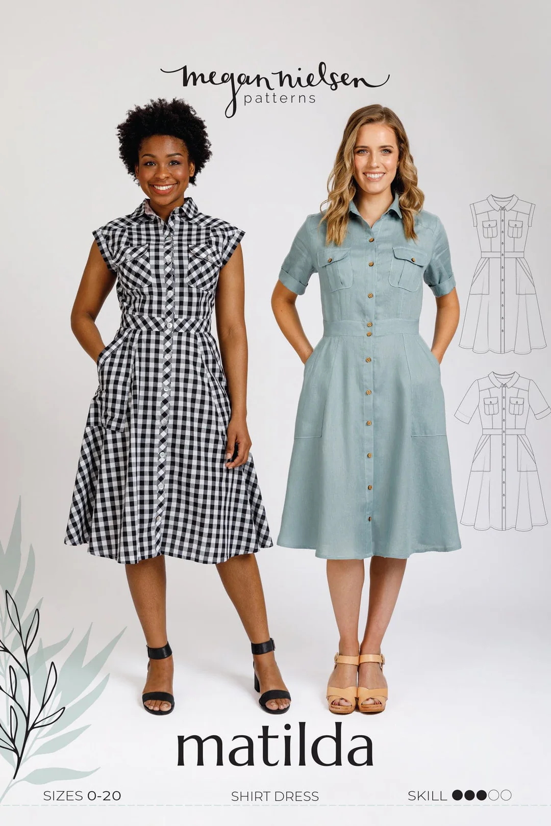The Megan Nielsen Matilda shirt dress ticked all the boxes I was looking for! The Matilda dress is a utility-style shirt dress, with princess seams, an A-line skirt and a collar and collar stand. There is an option for either drop shoulders with a sleeve band or a medium-length sleeve with a deep hem, which can be rolled up into a cute cuff. The pockets on the skirt are seriously roomy and there are pleated breast pockets, although I left them off on my version to have a more minimal look. The Matilda dress is designed for light-to-mediumweight fibres, so cotton, linen, rayons, tencels and silk would all work really well. I could imagine a lightweight indigo denim chambray would look really lovely. I opted to make the version with the sleeve bands, but I was inspired to follow the co-ord hack tutorial on their blog — I love the option to mix and match some days! The hack is simple to follow — you just need to alter the front placket, draft a new tie pattern piece and a new waistband pattern piece.